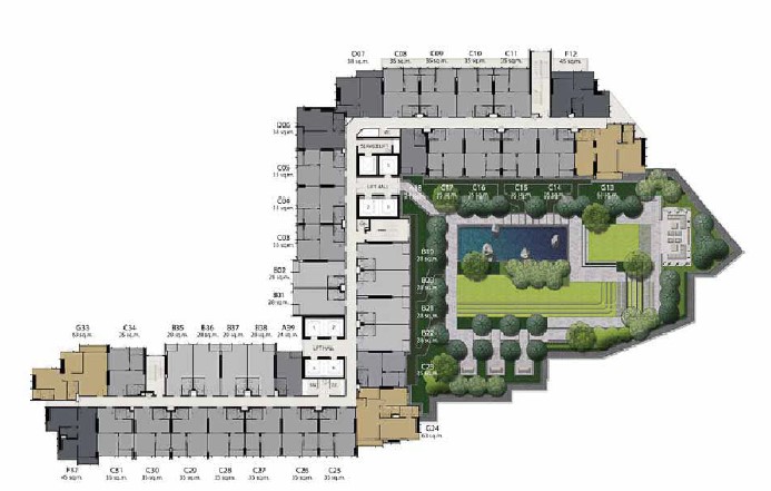 บริเวณชั้น 10 เป็นที่อยู่อาศัยพร้อม Sky Garden ที่มี Reflection Pond, Sunken Garden และ Party space เหมาะสำหรับคนที่ชอบใช้เวลาอยู่กับพื้นที่สีเขียวตลอดทั้งวัน ถ้าใครชอบแนวนี้ เลือกซื้อห้องบริเวณชั้น 10 ได้เลยครับ