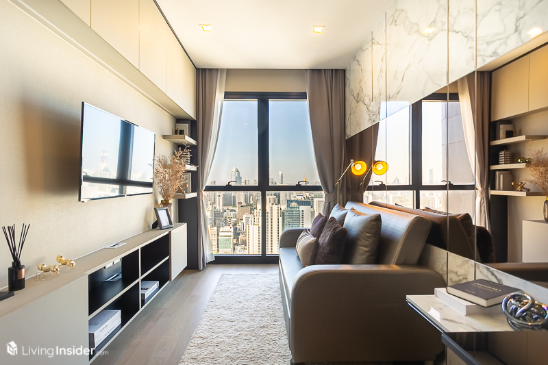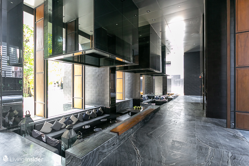 ไม่ใช่แค่อยู่บนสุดยอดทำเลนะครับ ตัวโครงการก็สุดยอดมากๆด้วย โดยที่นี่เป็นคอนโด High Rise สูง 50 ชั้น บนที่ดินประมาณ 2-3-47.60 ไร่ ทั้งหมดจำนวน 783 ยูนิต จำนวนยูนิตสูงสุดต่อชั้นอยู่ที่ประมาณ 20 ยูนิต ถือว่าให้ความเป็นส่วนตัวแก่ลูกบ้านได้อย่างพอเหมาะ โดดเด่นด้วยแนวคิด “Serenity Design” ตัวอาคารออกแบบเป็นทรงสี่เหลี่ยมผืนผ้าแบบเรียบง่ายและเน้นสีเทาเข้มสีดำ แต่หรูหราเฉียบคมในทุกมุมมอง ให้สัมผัสความงดงามของเส้นขอบฟ้าใจกลางกรุงเทพฯ แบบ 270 องศา