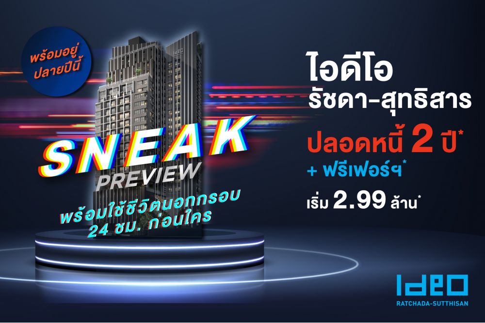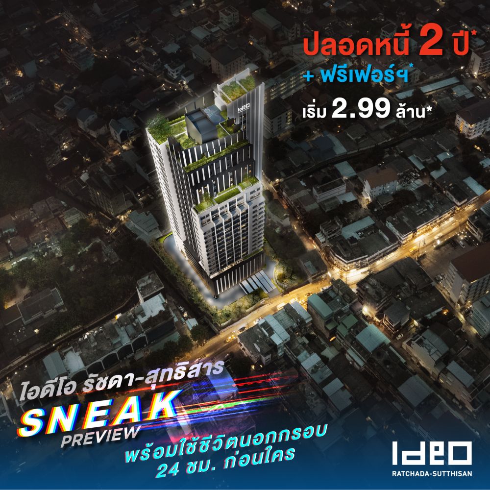 #โปรปลอดหนี้2ปี หมดกังวลกับเรื่องการผ่อนคอนโด... เพราะไอดีโอผ่อนให้ นาน 2 ปี! เริ่ม 2.99 ล้าน*