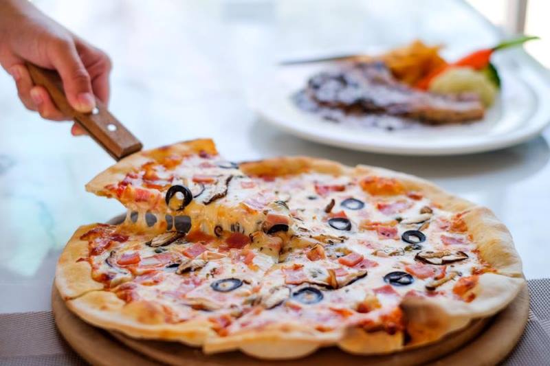 คาปริซีโอซ่าพิชซ่าไหมคะ เบคอน เห็ดหอม แฮม มะเขือเทศ มอสซาเรลล่าชีสยืดๆ จานนี้เป็นอีกหนึ่งจานเด็ดเลยค่ะ