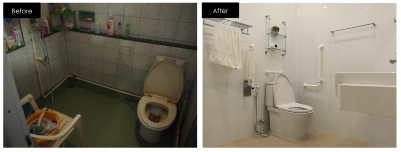 มีการจัดวางตำแหน่งสุขภัณฑ์ใหม่ เพิ่มราวจับเพื่อความปลอดภัย และใส่อ่างล้างหน้า 2 ใบเพื่อให้สามารถล้างหน้าแปรงฟันได้พร้อมกันในเวลาเร่งด่วน รวมถึงเปลี่ยนบานประตูเลื่อนให้ใหญ่ขึ้นเพื่อรองรับการใช้รถเข็นในอนาคต