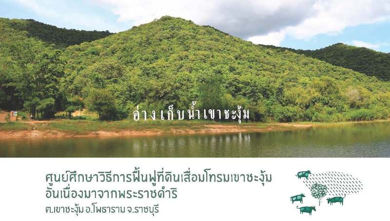 3. วิชาหมอดิน : ศูนย์ศึกษาวิธีการฟื้นฟูที่ดินเสื่อมโทรมเขาชะงุ้ม อันเนื่องมาจากพระราชดำริ จ.ราชบุรี โดยคุณบอย โกสิยพงษ์ นักแต่งเพลงชื่อดัง ปัญหาดินเสื่อมโทรมต้องรักษาด้วยการเพิ่ม “วิตามินของดิน” เพื่อฟื้นฟูปรับปรุงบำรุงให้สามารถกลับมาใช้ประโยชน์ได้อย่างมีประสิทธิภาพอีกครั้ง แก้ปัญหาที่ทำกินของตนเองให้กลับมาใช้ประโยชน์ได้ในที่สุด อาทิ การปลูกป่าโดยไม่ต้องปลูก ปล่อยให้ป่าเติบโตตามในวิถีธรรมชาติ การปลูกหญ้าแฝก ป้องกันการชะล้างพังทลายของดิน การรักษาความชุ่มชื้นของดิน