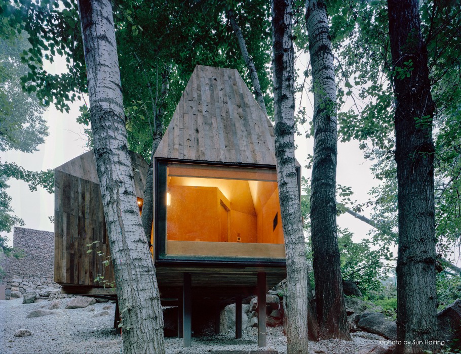 กระท่อมกลิ่นอาย Tropical แทรกตัวอยู่ในภูเขา Wuling แห่งกรุงปักกิ่ง ออกแบบโดยทีมสถาปัตยกรรม Wee Studio ได้ออกแบบกระท่อมไม้พื้นที่ 8 ตร.ม. ท่ามกลางสภาพแวดล้อมอันเงียบสงบของป่าไม้โดยแยกเป็น 2 ส่วนด้วยกันคือส่วนห้องน้ำและส่วนพักผ่อน ซึ่งภายในตกแต่งด้วยกระจกขนาดใหญ่เพื่อให้ดื่มด่ำกับวิวแห่งผืนป่า อีกทั้งยังมีฉนวนกันความร้อน และฮีตเตอร์ไว้สำหรับรองรับในช่วงฤดูหนาวพร้อมสัมผัสกับทิวทัศน์ที่แตกต่างในแต่ละฤดูกาล
