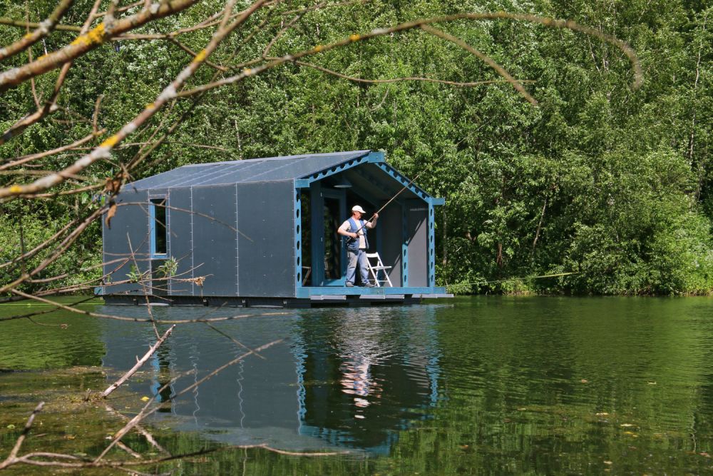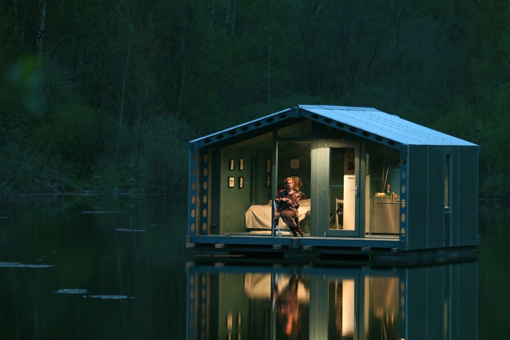 บ้านกลางน้ำขนาด 16 ตร.ม. ตั้งอยู่ในกรุงมอสโคว์ ประเทศรัสเซีย ที่เลือกใช้วัสดุที่มีน้ำหนักเบาแต่ทนต่อสภาพแวดล้อมได้อย่างแผ่นอลูมิเนียมคอมโพสิตซึ่งเป็นวัสดุเดียวกันที่ใช้ก่อสร้างตัวอาคาร ทนทานต่อสภาพอากาศที่รุนแรง ออกแบบโดยทีมสถาปนิก BIO-architects ได้เนรมิตกระท่อมขนาดกระทัดรัดที่สามารถดึงศักยภาพแห่งพื้นที่โดยรอบออกมาใช้ได้อย่างสมบูรณ์แบบ อีกทั้งเป็นบ้านกลางน้ำขนาดเล็กที่ครบเครื่องทั้งดีไซน์และการใช้งาน