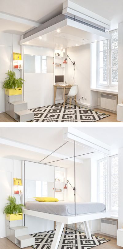 เป็นหนึ่งไอเดียเตียงพับได้ที่ช่วยประหยัดพื้นที่ใช้สอยได้มากเลยทีเดียว หมดปัญหาเตียงนอนขนาดใหญ่กินพื้นที่เพราะเตียงพับได้ชนิดนี้สามารถเก็บได้บนเพดาน เรียกได้ว่าเป็นเตียงนอนดีไซน์เก๋อีกหนึ่งชนิดที่ใช้พื้นที่ทุกตารางเมตรได้อย่างคุ้มค่าสุดๆ แถมยังเหลือพื้นที่ไว้วางเฟอร์นิเจอร์ชนิดอื่นได้สบายๆ