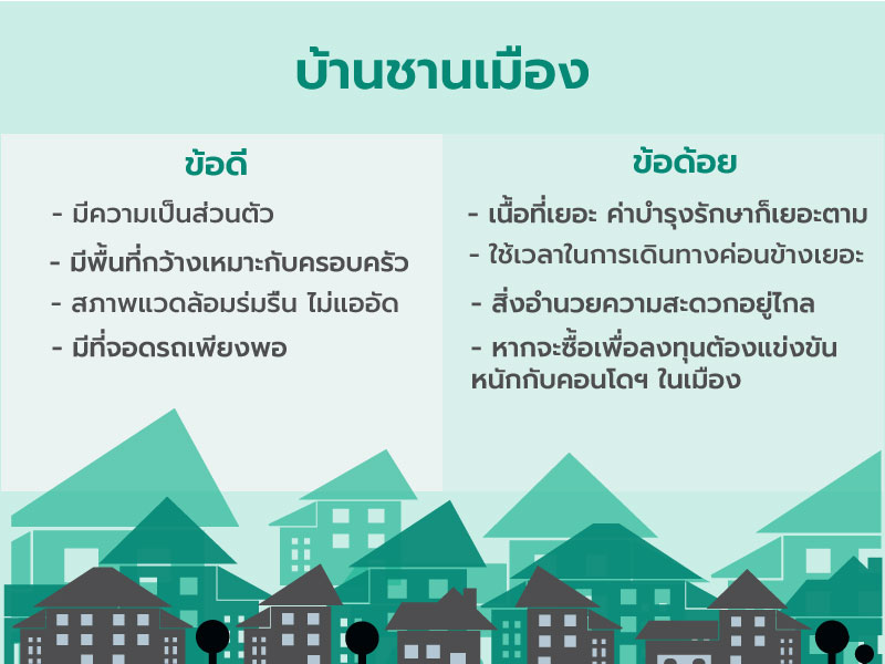 ปัญหาโลกแตกสำหรับใครที่กำลังเลือกซื้อที่อยู่อาศัยแห่งแรก หนึ่งในคำถามในใจของใครหลายๆ คนก็คงหนีไม่พ้นว่าจะเลือกซื้อบ้านชานเมืองหรือคอนโดในเมืองดี? ซึ่งแน่นอนว่าที่อยู่อาศัยทั้ง 2 รูปแบบนี้ต่างก็มีข้อดี ข้อด้อยแตกต่างกันออกไป ซึ่งเราได้รวบรวมข้อดี ข้อด้อยของอสังหาฯ 2 ประเภทนี้มาไว้เป็นตัวช่วยประกอบการตัดสินใจ สำหรับใครที่กำลังคิดจะซื้อบ้านหลังแรกไม่ควรพลาดครับ มาดูกันเลย