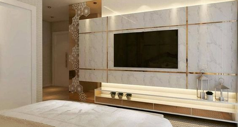 ต้องบอกว่าลายหินอ่อนกับไม้ ทำให้ห้องดูอบอุ่น และเป็นห้องที่แต่งได้ง่ายสุด ทำยังไงก็ดูดี ยกตัวอย่าง ห้องนั่งเล่น อาจให้ผนังฝั่งทีวีบิวท์เป็นไม้ทั้งหมด ประกอบกับชั้นวางทีวีเป็นลายหินอ่อน ซึ่งสามารถสลับตำแหน่งได้แล้วแต่ความชอบ ส่วนห้องครัว เคาน์เตอร์ครัวรวมถึงตู้เก็บของชั้นบนอาจใช้เป็นไม้ลามิเนต และท้อปรวมถึงผนังหลังเตาเป็นลายหินอ่อน หรือจะใช้แพนทรี่ลายหินอ่อนก็ดูลงตัวไปอีกแบบ