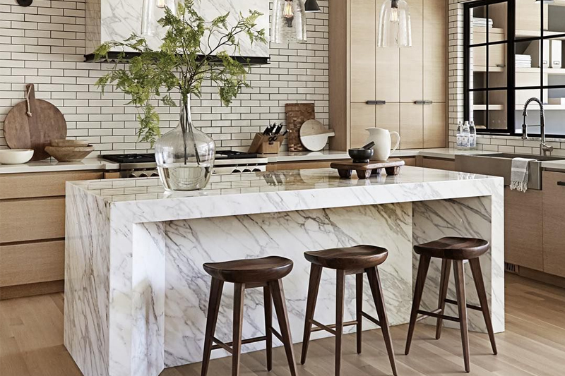เป็นอีกหนึ่งการตกแต่งที่ใครหลายคนชอบ เพราะโทนสีเข้มอย่างสีดำ จะช่วยให้ห้องดูเท่มีสไตล์น่าค้นหา ยิ่งบวกกับลายหินอ่อน ทำให้เพิ่มความหรูหรามีเอกลักษณ์เข้าไปอีก โดยอาจจะเลือกใช้ลายหินอ่อนสีขาวเป็นผนัง คู่กับเฟอร์นิเจอร์สีเข้ม หรือจะเป็นผนังลายหินอ่อนสีดำ และให้วัสดุอย่างอื่นเป็นสีขาวหรือสีทอง แม้แต่เคาน์เตอร์ครัวก็เลือกสีดำ ท้อปด้วยลายหินอ่อนก็ได้