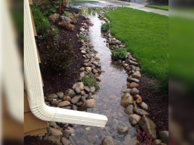 อีกหนึ่งปัญหาที่ผมเจอบ่อยมากเมื่อเวลาฝนตกก็คือ "น้ำขัง" นี่ล่ะครับ บางบ้านที่ระบบระบายน้ำบนพื้นที่รอบบ้านไม่นี่ดีอาจกลายเป็นบ่อน้ำขังได้เลยด้วย พลพรรคยุงก็เข้ามาสร้างหมู่บ้านอีก หนักกว่าเดิมเลยทีนี้ ดังนั้นการขุดคลองระบายน้ำฝนให้ไหลออกไปด้านนอก และตกแต่งขอบด้วยหินแต่งสวนซะหน่อย เราก็จะได้ลำธารน้อยๆ ไว้แก้ปัญหาน้ำขังแถมยังสวยงามอีกด้วย เลิศไปเลยใช่มั้ยล่ะ