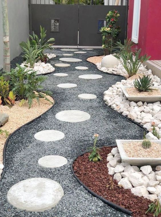 การใช้หินมาเป็นส่วนประกอบในการจัดสวนหน้าบ้านจะช่วยเพิ่มความเป็นธรรมชาติ รวมถึงเพิ่มมิติให้กับสวนหน้าบ้านได้มากขึ้นและยังช่วยให้บ้านดูกว้างขึ้นได้ด้วย โดยการตกแต่งด้วยหินสามารถนำมาตกแต่งเป็นส่วนทางเดินก็เป็นวิธีที่น่าสนใจเลยทีเดียว