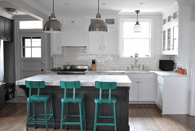 ครัวรูปแบบนี้เริ่มแรกมันพัฒนามาจากครัวรูปตัวแอลครับ ซึ่งลักษณะโดยรวมจะเหมือน ๆ กัน แต่จะมีจุดหนึ่งที่แตกต่างออกไป นั่นก็คือเกาะกลางทรงสี่เหลี่ยมที่โผล่ขึ้นมาตรงกลางของพื้นที่ครัวเลยครับ โดยพื้นที่ตรงนี้เป็นพื้นที่เอนกประสงค์ครับ ประยุกต์ใช้ได้ตามความเหมาะสมเลย ไม่ว่าจะใช้วางเตา ใส่ซิงค์ หรือใช้เป็นโต๊ะรับประทานอาหารก็ได้