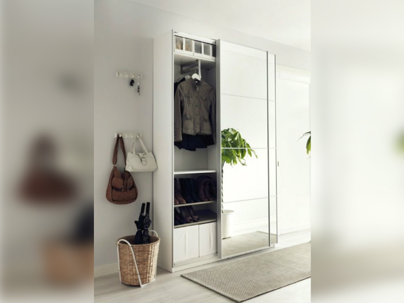 หน้าตู้เสื้อผ้าเป็นพื้นที่ที่หลายคนใช้เวลาอยู่กับมันนานพอสมควรเลย โดยเฉพาะสาว ๆ ที่ต้องเลือกชุดลองชุดให้เข้ากับฟิลและงานในแต่ละวัน จึงทำให้ต้องมีกระจกเงาอยู่ข้างตู้เพื่อเช็คความเป๊ะ ปัง กันแน่นอนอยู่แล้ว ... แล้วถ้าเรารวมเอากระจกเงามาไว้บนบานประตูตู้เสื้อผ้าไปซะเลยล่ะ มันจะดีกว่ามั้ย ? ทั้งสวย และประหยัดพื้นที่อีกด้วย ผมมองว่าเป็น Combination ที่ลงตัวมากเลยครับ