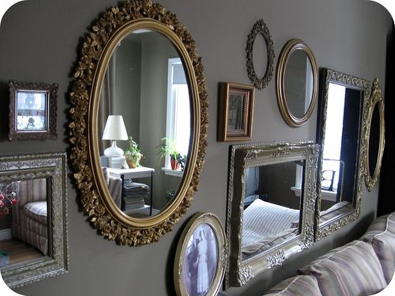 กระจกเงานอกจากจะใช้ส่องเสริมสวยเสริมหล่อแล้ว ยังใช้ทำอย่างอื่นได้อีกครับ อย่างในภาพนี้จะเป็นไอเดียการนำกระจกเงาใส่กรอบหลายแบบหลายทรงมาติดไว้บนผนังเดียวกัน ซึ่งจะทำให้ฟังก์ชั่นของมันเปลี่ยนไปครับ จากใช้ส่องอย่างเดียวกลายเป็นเพิ่มความสวยงามให้ผนังโล่ง ๆ ดูมีลูกเล่นมากขึ้น แถมยังดูสวยงามแปลกตาอีกด้วย ใครเห็นก็ชอบล่ะครับไอเดียดีขนาดนี้