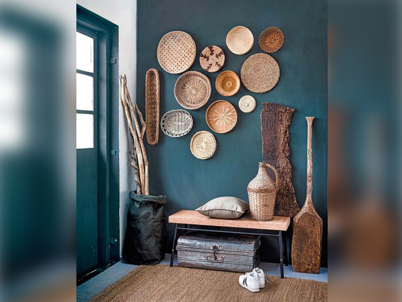 ถ้าหวายบนเพดานไม่แปลกพอ เอาหวายบนกำแพงเลยมั้ยล่ะ เด็ดแน่นอน เป็นไอเดียที่นำพวกไม้สานหลายชนิดมาแปะไว้บนกำแพงเป็น Decoration ครับ ยิ่งอยู่บนผนังสีเข้มแบบนี้ยิ่งทำให้เครื่องสานดูโดดเด่นขึ้นไปอีก ถ้าอยากให้มันใช้ประโยชน์ได้ด้วยก็ทำได้นะครับ ลองเอาไปดัดแปลงในครัวที่บ้าน แขวนเครื่องสานแบบนี้แทน หยิบไปใช้เสร็จก็เอามาแขวนที่เดิม ผมบอกเลยปังแน่นอน !