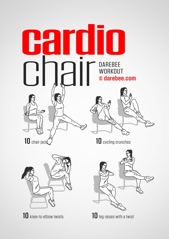 เก้าอี้นี่ก็ถือเป็นอุปกรณ์ภายในบ้านที่ใช้ออกกำลังกายได้ดีอีกชิ้นหนึ่งครับ ใช้ออกกำลังได้หลายท่าเลยด้วย เริ่มจากเบสิคง่าย ๆ เลยก็นั่งบนเก้าอี้ แล้วยกขาเหยียดตรงให้ลอยขึ้นจากพื้น เกร็งค้างไว้ 30 วินาทีแล้วปล่อย ทำประมาณ 10 ครั้ง หรือจะนั่งเหยียดขาตรงแล้วก้มแตะสลับปลายเท้าก็ถือเป็นการยืดเส้นที่ดีเหมือนกัน ครีเอตท่าออกกำลังได้อิสระเลยครับ