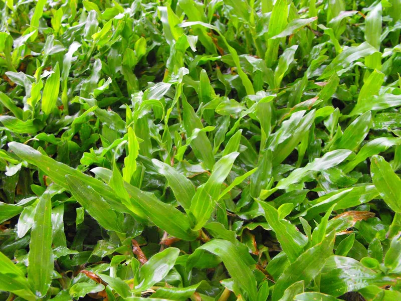 หญ้ามาเลเซียจะมีหน้าตาที่แตกต่างจากหญ้าสามชนิดด้านบนครับ เป็นหญ้าใบใหญ่ ใบแผ่ออกด้านข้างไม่ได้พุ่งขึ้นด้านบน เป็นหญ้าที่ดูแลง่าย ไม่ต้องรดน้ำบ่อย แต่หญ้ามาเลเซียไม่ชอบแดดครับ จึงเหมาะกับการปลูกในพื้นที่ร่มใต้ชายคา แต่จุดด้อยของหญ้าชนิดนี้ก็คือหน้าตามันจะไม่สวยงามเท่าหญ้าญี่ปุ่นและหญ้านวลน้อย ด้วยเพราะใบใหญ่และแผ่ออกด้านข้าง ทำให้ปริมาณของต้นหญ้าไม่หนาแน่นและดูไม่เรียบเป็นผืนเดียวกัน
