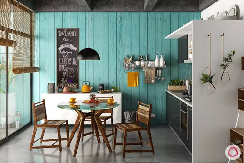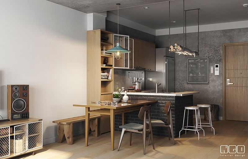 สำหรับใครที่หลงรักในงานไม้เหมือนผมแล้วล่ะก็ ยังไงก็ต้องมาทางนี้จริง ๆ ครับ ลองจัดมุมครัวในคอนโดด้วยการวางโต๊ะกลมเล็ก ๆ สักตัว เก้าอี้ไม้อีกสอง ผนังก็ใช้วอลเปเปอร์ลายไม้ไปเลยสะดวกดี มู่ลี่ไม้ไผ่เติมเข้าไปอีกหน่อยเพิ่มความคลาสสิค ซึ่งพอดูรวม ๆ แล้วมันไม่ได้คลาสสิคจ๋าเลยนะครับ ออกจะผสมโมเดิร์นด้วยซ้ำ แต่กลับเข้ากันได้ดีซะงั้น ลงตัวมากเลย
