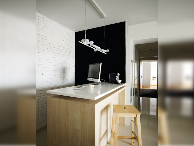 เวลาไปนั่งร้านกาแฟ บางทีผมก็เลือกนั่งบาร์มากกว่านั่งโต๊ะนะ มันให้ฟิลพักผ่อนแบบพร้อมแอคทีฟได้ตลอดเวลา สดชื่นกว่านั่งเอนหลังที่เก้าอี้พนักพิงนุ่ม ๆ เพราะงั้นถ้ามุมครัวห้องใครมีเกาะยื่นออกมา ก็ยึดตรงนั้นเป็นบาร์คาเฟ่เลยก็ได้นะครับ ไม่เปลืองพื้นที่ด้วย เติมแค่เก้าอี้ 2-3 ตัวก็สวยแล้ว อาจเพิ่มโต๊ะไม้ขนาด 4 คนเข้าไปอีกสักตัวก็ดีเหมือนกัน เผื่อแขกไปใครมาจะได้มีพื้นที่นั่งจิบกาแฟแบบชิล ๆ