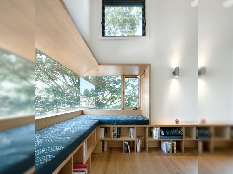 จะมีที่ไหนมีความสุขไปกว่ามุมเงียบ ๆ กับหนังสือเล่มโปรดและวิวธรรมชาติสีเขียวภายนอกอีกล่ะครับ ? ถ้าบ้านใครมีมุมอ่านหนังสือผมแนะนำไอเดียนี้เลย เป็นการทำที่นั่งอ่านหนังสือให้อยู่ติดกับหน้าต่างที่วางตัวยาวตลอดแนวผนังห้องเลยครับ สามารถนั่งอ่านหนังสือไปดูวิวไปได้แบบสดใสและสดชื่นสุด ๆ เหมาะกับห้องอ่านหนังสือที่ต้องใช้สมาธิอย่างมาก
