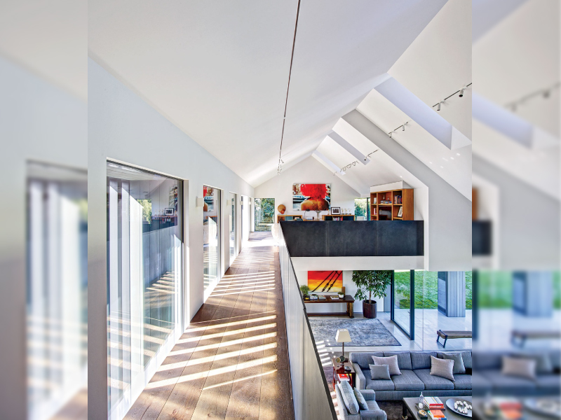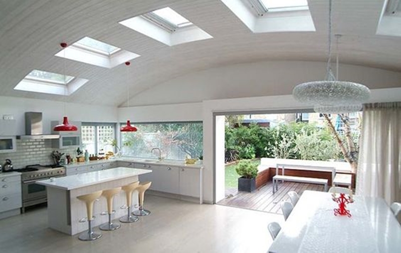 ถ้าใครคิดว่าการรับแสงจากภายนอกแค่มุมเดียวหรือส่วนเดียวของบ้านมันน้อยไป ผมว่าไอเดียนี้น่าจะตอบโจทย์คุณเลยล่ะ โดยบ้านหลังนี้ทำเพดานเป็นทรงโค้งทำให้เพดานสูงกว่าปกติเพิ่มความโปร่งให้บ้าน และที่พิเศษกว่านั้น เค้ายังเจาะเพดานเป็นช่องให้แสงแดดจากภายนอกเข้ามาเพิ่มความสว่างภายในตัวอาคารได้อีก ประกอบกับหน้าต่างและประตูขนาดใหญ่เพิ่มส่องแสงและทางลม แค่เห็นภาพผมยังนึกออกเลยว่ามุมนี้คงมีลมพัดผ่านตลอดวันเลย ทั้งสวยและประหยัดไฟแน่นอนแบบนี้