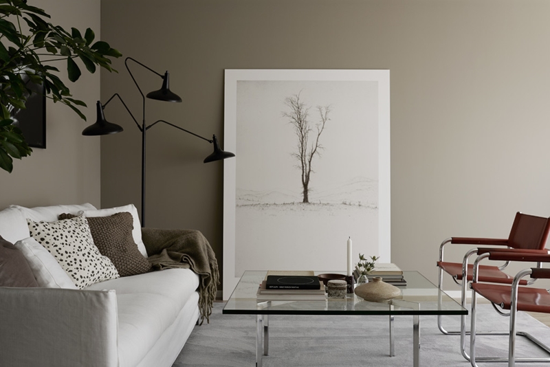 พอรู้ถึงความหมายของมันแล้วบางคนอาจยังคิ้วขมวดอยู่ว่า... แล้วสีหม่น ๆ เรียบ ๆ แบบนั้นมันจะเอามาแต่งบ้านได้หรอ ? สวยจริงหรอ ? ... อย่าดูถูกเชียวนะครับ สีพื้น ๆ แบบนี้แหละตัวดีเลย แค่ตัวมันเองอย่างเดียวก็สวยแล้ว ยิ่งมีเฟอร์นิเจอร์มาวางก็จะยิ่งดูดีกว่าเดิม เพราะความเรียบของมันจะดันให้เฟอร์นิเจอร์ด้านหน้าดูเด่นขึ้นไปอีก อย่างในภาพเนี่ย เห็นไหมครับว่ากรอบรูปและเซตโซฟามันเด่นขึ้นขนาดไหนกับผนังสี Earth Tone