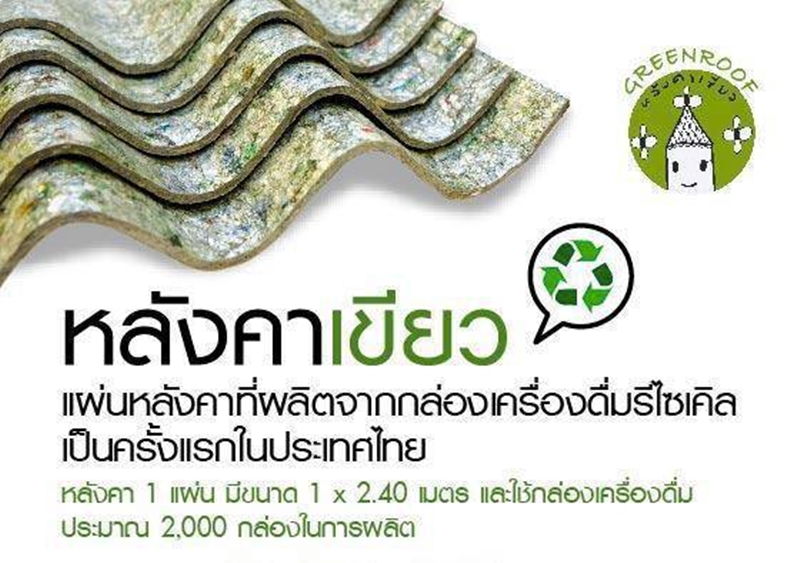 โครงการหลังคาเขียว (Green Roof) เค้ารับบริจาคกล่องนมยูเอชที หรือกล่องน้ำผลไม้ไปทำเป็นแผ่นหลังคาครับ โดยหลังคา 1 แผ่นต้องใช้กล่องนมถึง 2,000 กล่องเลยทีเดียว แล้วที่สำคัญ หลังคาที่ทำจากกล่องนมยูเอชทีนี้จะมีความแข็งแรง ทนทาน ไม่เป็นเชื้อรา ไม่ดูดความร้อน และมีคุณสมบัติทนไฟเพิ่มเข้ามาด้วย พอได้หลังคามาแล้วเค้าจะส่งต่อให้มูลนิธิอาสาเพื่อนพึ่ง (ภาฯ) ยามยาก เพื่อแจกจ่ายให้ผู้ที่ขาดแคลนต่อไปครับ ใครที่อยากบริจาคก็ล้างกล่องนมให้สะอาด พับให้แบน แล้วนำไปบริจาคได้ที่บิ๊กซีทั่วประเทศเลยครับ