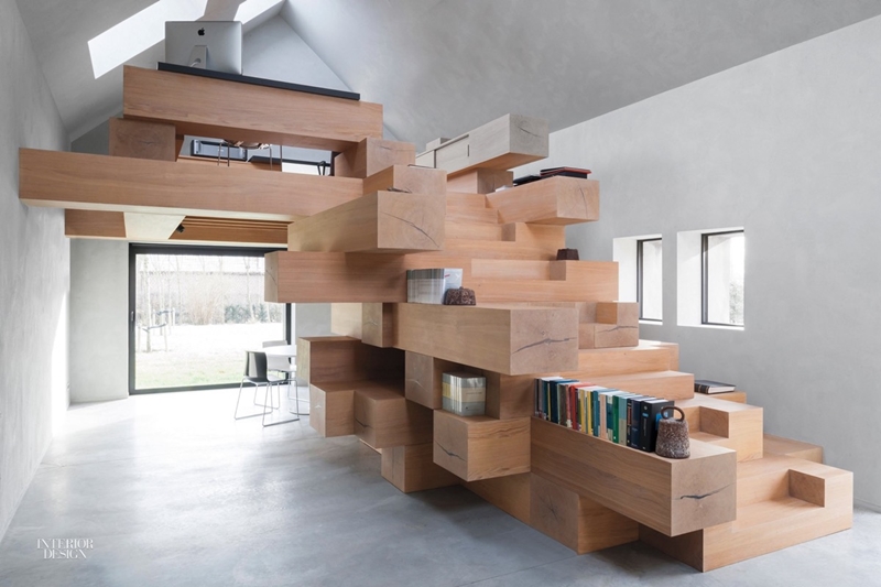 ไอเดียบันไดบ้านแบบสวยแปลกแหวกแนวอันต่อมาผมว่าเหมาะกับคนที่ชอบสายอาร์ต ๆ หน่อยนะ คือมันจะดูไม่ค่อยเป็นระเบียบสักเท่าไหร่แต่รับประกันว่าสวย โดยไอเดียนี้จะเป็นการใช้ไม้ท่อนสี่เหลี่ยมแบบขัดผิวเรียบ นำมาวางเรียงกันแบบไม่สมมาตรครับ แน่นอนว่าตัดช่องเป็นขั้นบันไดไว้อย่างดี แต่พื้นที่โดยรอบนั้นวางตัวอย่างสะเปะสะปะไร้ทิศทาง ซึ่งพอดูรวม ๆ แล้วมีเสน่ห์เหลือเกินจริง ๆ