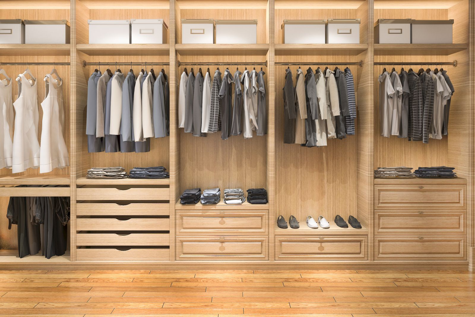 อันนี้ต้องคำนวณให้ดีเลย ไม่ใช่ไรหรอกเดี๋ยวใส่ชุดไม่พอ ซึ่งก็ขึ้นอยู่กับไลฟ์สไตล์การแต่งตัวของแต่ละคน ถ้ามีเสื้อเยอะก็แบ่งราวเป็นชั้นบนกับชั้นล่าง หรือถ้ามีกางเกงยีนส์เยอะ แนะนำให้ทำเป็นราวแขวนกางเกงแบบมีรางดึงเข้าออก เพื่อการใช้งานที่สะดวก หรือใครมีเดรสมีกางเกงผ้าเป็นจำนวนมาก ก็ทำแบ่งราวแขวนเดี่ยวไว้ล็อกหนึ่ง ผ้าจะได้ไม่ยับ