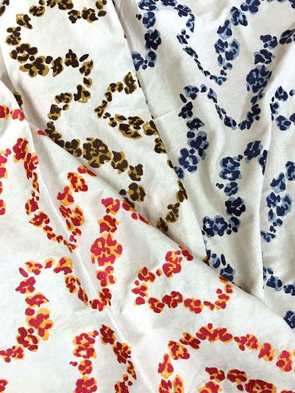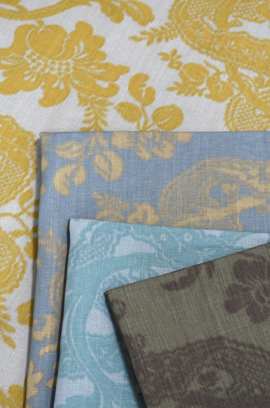 การใช้ลายพิมพ์เกี่ยวกับสัตว์ ซึ่งนำแรงบันดาลใจมาจากผ้าในอดีตที่มีลวดลายริบบิ้นเลาะเลี้ยวเป็นทาง ทำให้ผ้าผืนนี้โดดเด่นด้วยการพลิกแพลงได้อย่างทันสมัยและมีชั้นเชิง นับเป็นผ้าประดับตกแต่งที่สวยงามอีกชิ้นที่มีลวดลายสามเฉดสีบนผ้าพื้นอย่างผ้าลินินสีธรรมชาติ