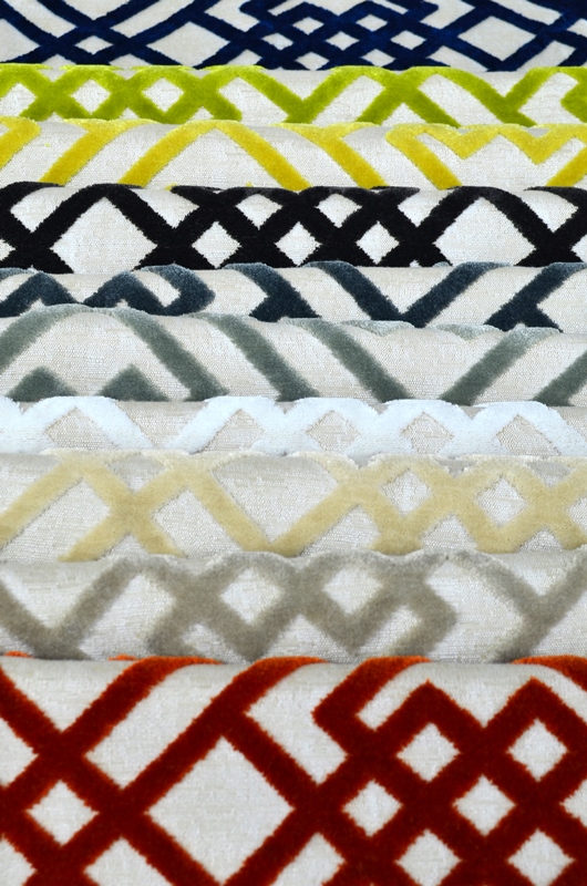 ผ้าทอแจ็คการ์ดเส้นใยเทรวิร่า ซีเอส เนื้อกำมะหยี่ขนตัด (cut-velvet) ดีไซน์นี้ได้รับแรงบันดาลใจมาจากสีสันและลวดลายที่พบในสถาปัตยกรรมไบแซนไทน์ดั้งเดิมโดยลายระแนงที่ซ้ำไปซ้ำมานี้ เป็นลวดลายที่ได้รับความนิยม ซึ่งถูกนำไปใช้ในวัฒนธรรมต่างๆ มากมาย ที่ชวนให้หวนนึกถึงการบรรจบกันของโลกตะวันออกและโลกตะวันตกที่แผ่ซ่านอยู่ทั่วทั้งคอลเลคชั่น ซึ่งเนื้อผ้าผืนนี้นอกจากจะผ่านการฟอกนุ่มเพื่อให้สัมผัสที่หรูหราแล้ว ยังช่วยเสริมให้เครื่องเรือนดูเด่นสะดุดตาอีกด้วย