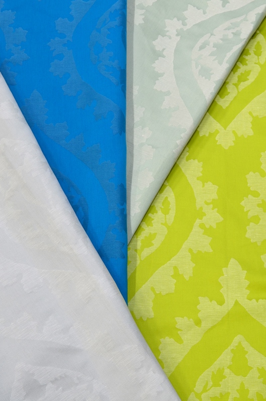 ผ้าฝ้ายทอที่ดูเรียบง่ายหมดจดผืนนี้ ช่วยเพิ่มเอกลักษณ์ให้กับคอลเลคชั่นได้เป็นอย่างดี ผ้าลายเล็กผืนนี้ออกแบบขึ้นจากรายละเอียดของกระเบื้องในงานสถาปัตยกรรมของอินเดีย ซึ่งเข้ากันได้อย่างดีเยี่ยมกับการใช้งานทุกรูปแบบภายในห้อง ไม่ว่าจะเป็นผ้าม่าน ผ้าบังตา ผ้าบุเฟอร์นิเจอร์ ผ้าบุหัวเตียง และผ้าระบาย ตลอดจนการใช้งานในรูปแบบอื่นๆ นอกจากนี้ยังมีเฉดสีให้เลือกมากมาย ซึ่งทำให้ผ้าผืนนี้เป็นตัวเลือกในการตกแต่งที่น่าจับตามอง