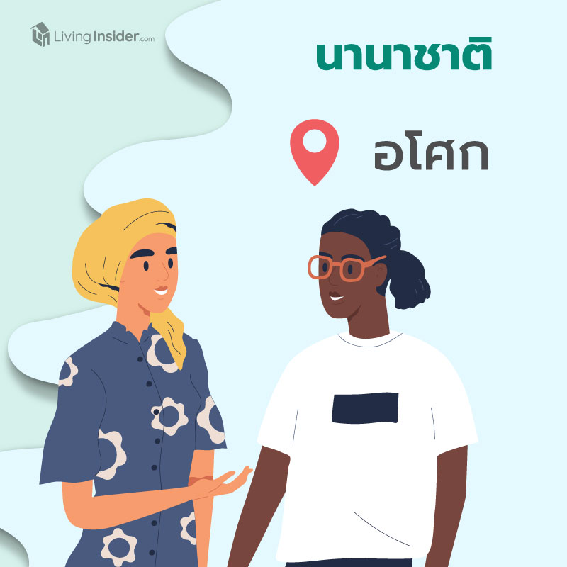 อโศก เป็นทำเลที่ค่อนข้างหลากหลายทางเชื้อชาติพอสมควร มีชาวต่างชาติหลากหลายสัญชาตินิยมมาอาศัยอยู่ในย่านนี้ ไม่ว่าจะเป็น เกาหลี ญี่ปุ่น สิงคโปร์ ชาวตะวันออก ชาวตะวันตก รวมไปจนถึงตะวันออกกลาง ด้วยทำเลที่มีความอุดมสมบูรณ์ทั้งเรื่องการเดินทางเพราะเป็นช่วงต่อที่สามารถเชื่อมเข้าสุขุมวิทตอนกลางได้ รวมทั้งยังเป็นจุดเชื่อมต่อระหว่าง MRT และ BTS ในย่านนี้ยังมีสถานที่อำนวยความสะดวกหลากหลายไม่ว่าจะเป็นห้างสรรพสินค้าที่ไว้รองรับชาวต่างชาติที่หลากหลายสัญชาติอย่าง Terminal 21 และยังมีร้านอาหารเอเชีย ตะวันตก ไปจนถึงอาหารตะวันออกกลาง หรือแหล่งแฮงค์เอาท์แทรกตัวอยู่ในย่านนี้ค่อนข้างหลากหลาย