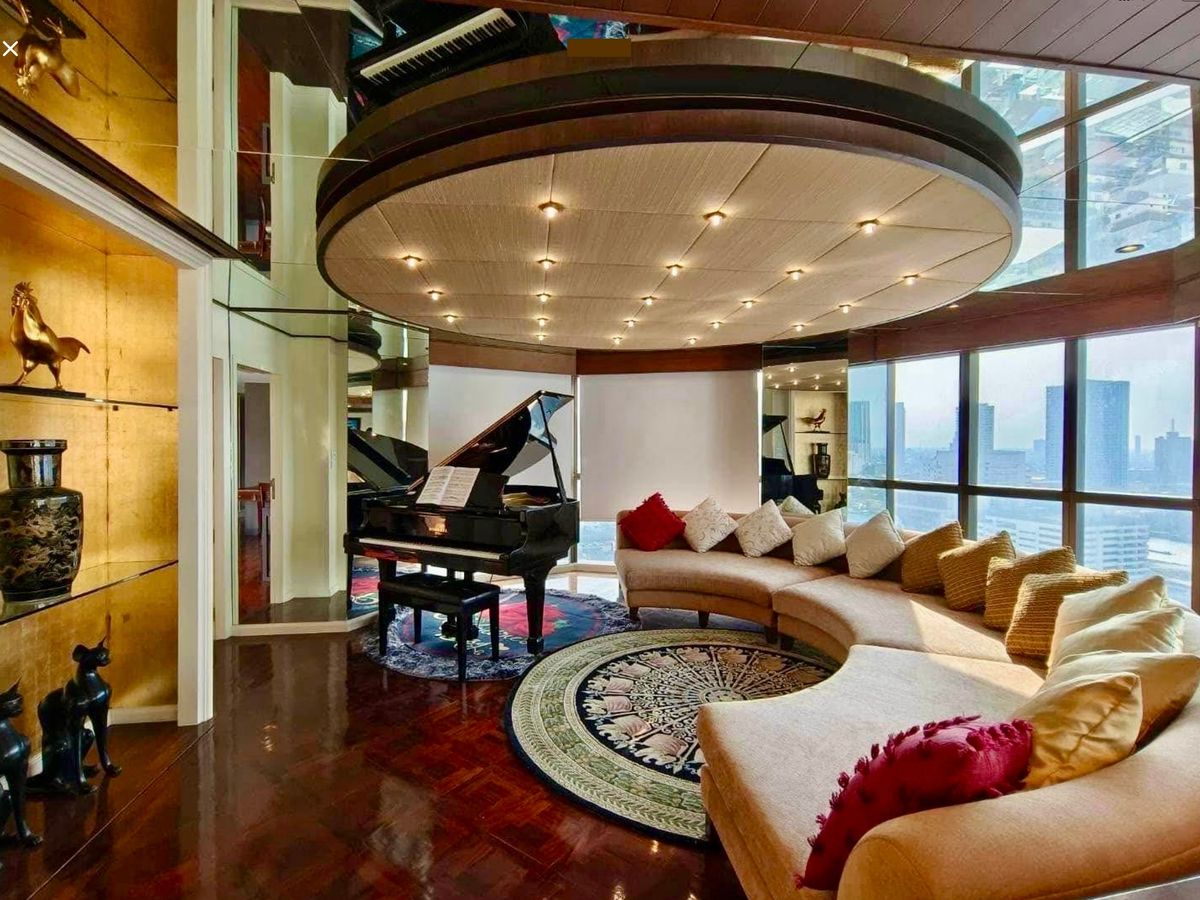 📢👇 The Exclusive Luxury Private Residence with Chao-Phaya River view in the prime location building at SilomA unique penthouse with Thai art studio design , 5 private balconies horizon sunset view