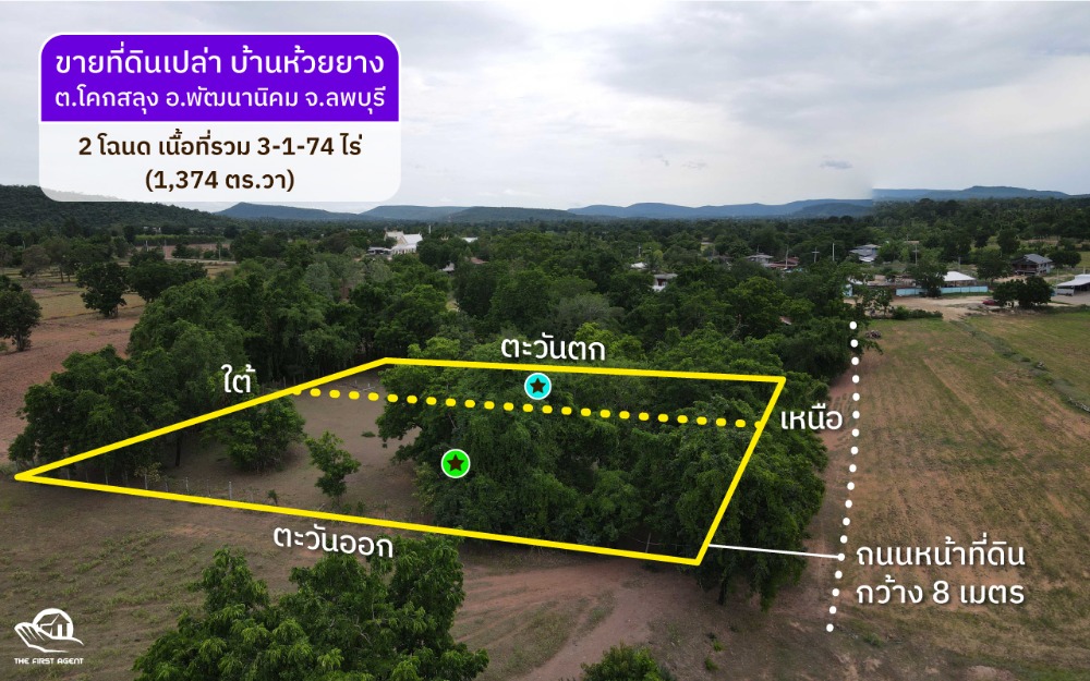 Urgent sale of land !!! Beautiful land in Chai Badan District, Lop Buri Province, near Lam Narai Market, Chai Badan Hospital, Provincial Electricity Authority and Chai Badan School, area 64 rai 353 sq m, price 44.8 million baht (owner sells by himself, ca