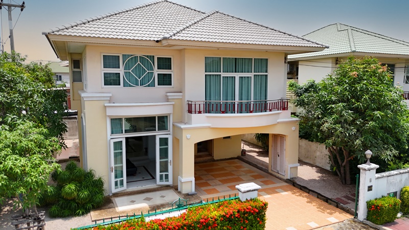 Live comfortably or run your business — This house does it all! For sale: a spacious 2-storey detached house on Ban Phaeo–Phra Prathon Road (Highway 375), Samut Sakhon. With 174.4 sq.wah of land and 260 sq.m. of usable space, this home features 4 bedrooms