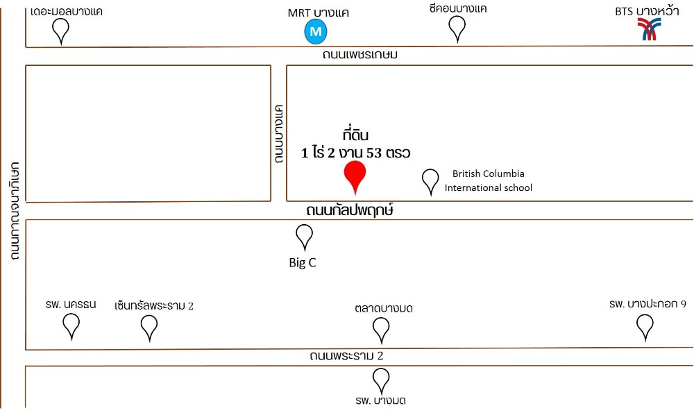 Kalapapruek is location convenient travel connected to the city center because of the green line extension BTS. Wongwian Yai - Bang Wa It is also connected to various roads such as Thoet Thai Road, Talat Phlu Area, Tha Phra Road, Pho Nimit, Wutthakat, Bang Wa, etc., This location is not only a place to eat and travel. There are also schools, hospitals such as British Columbia International School. Lertlah School, Kanchanaphisek Road This area has shopping malls and restaurants along the Kanlapaphruek line, Metro West Town, City Connect Kallaprapruk, Sampeng 2, Food Villa, a new style market for Kalapapruek people, The Circle Ratchapruk, Seacon Bang Khae, The Paseo Plaza, BIG C / TESCO LOTUS / MAKRO / HOMEPRO are all available on this area. In the aroun area has hospitals such as Phayathai Hospital 3, Bangpakok Hospital 8, Kasemrad Hospital Bang Khae is known as another location that can easily connect to various places and has complete facilities.
