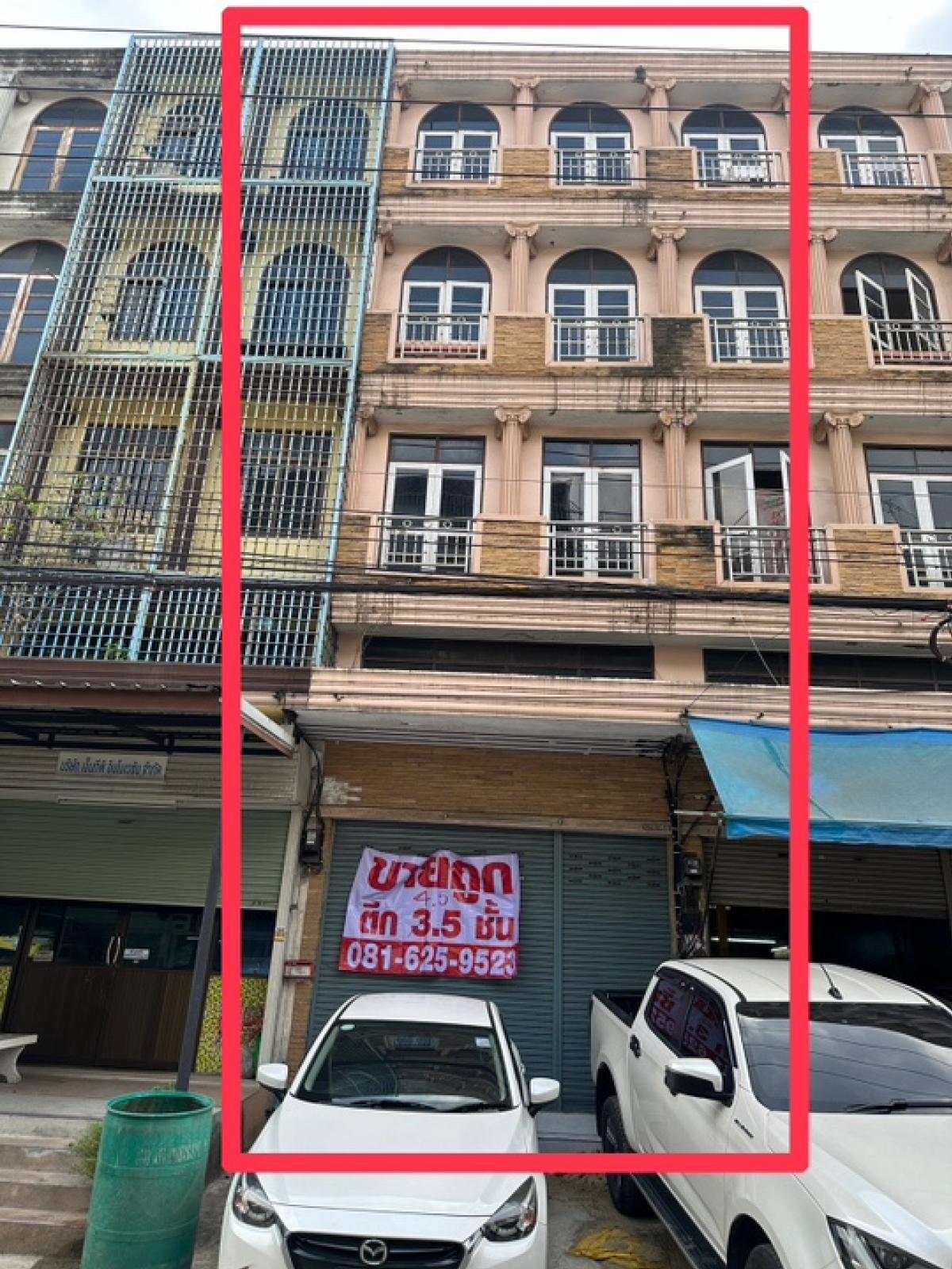 For sale: 4.5-storey commercial building, 3 units, on the main road, at the entrance to Soi Jai-ue, opposite the Saem Suk factory, Pathum Thani. Very good location, suitable for business.