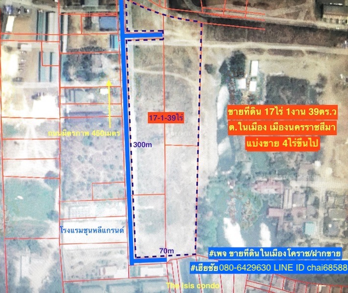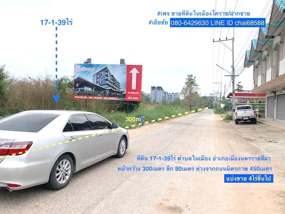 ขายที่ดิน 17.5ไร่ กลางเมืองโคราช(ซอยบ้านเกื้อ)ห่างจากถนนมิตรภาพ 450เมตร ทำเลหอพัก,อพาร์ทเม้นท์,คอนโด,โรงแรมใกล้โรงพยาบาลมหาราชนครราชสีมา ที่ดินหน้ากว้าง 300เมตร ลึก 80เมตร แบ่งขาย 2ไร่ขึ้นไปได้เปิดราคา 50,000/ตร.ว สนใจติดต่อเฮียชัย คลิกเพื่อดูเบอร์โทรติดต่อ LINE ID chai68588 #เพจ https://web.facebook.com/chai68588 ขายที่ดินสวย สภาพแวดล้อมดี ทำเลเข้าออกสะดวก เข้าออกได้หลายทาง ราคาต่อรองได้ ต้องการพิกัดแผนที่ หรือ ข้อมูลเพิ่มเติม แชท/โทร มาคุยได้
