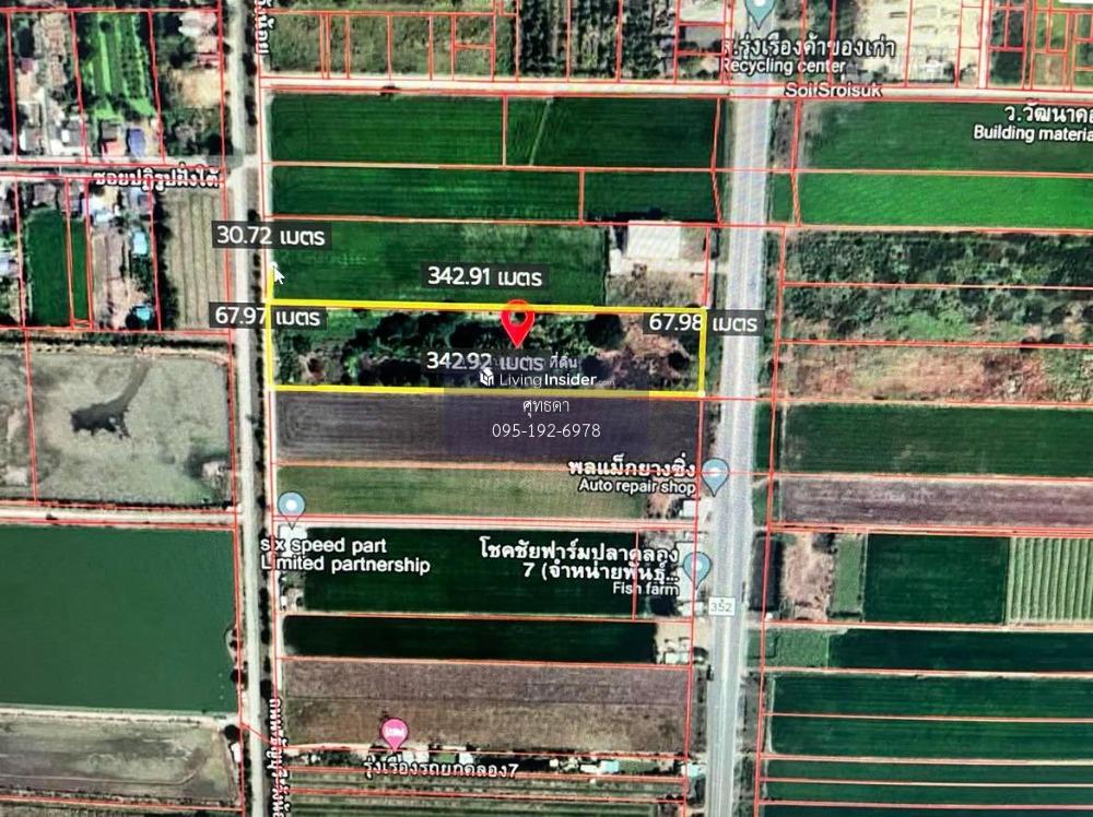 ขายที่ดินเปล่า 14 ไร่ 2 งาน 43 ตารางวา คลองหก คลองหลวง ปทุมธานี *** ด้านหน้าอยู่ติด ถนนธัญบุรี *** *** ด้านหลังอยู่ติด ถนนธัญบุรี-วังน้อย ที่ดิน 14 ไร่ 2 งาน 43 ตารางวา ขายไร่ละ 4,000,000.-บาท (กว้าง