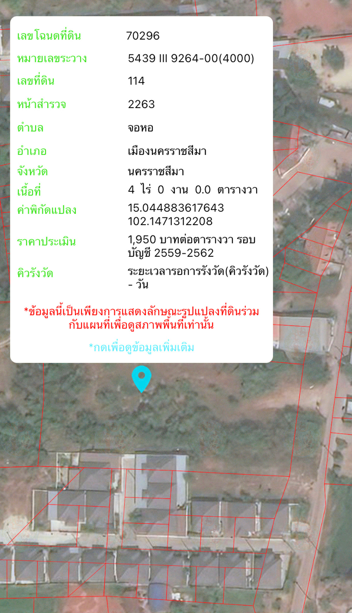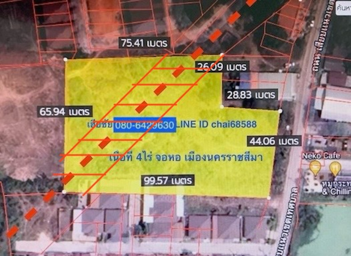 ขายที่ดิน 4ไร่ จอหอ เมืองโคราช ใกล้แยกจอหอ ที่ดินหน้ากว้าง 45เมตร ลึก 100เมตร ห่างจากถนนมิตรภาพ 250เมตร