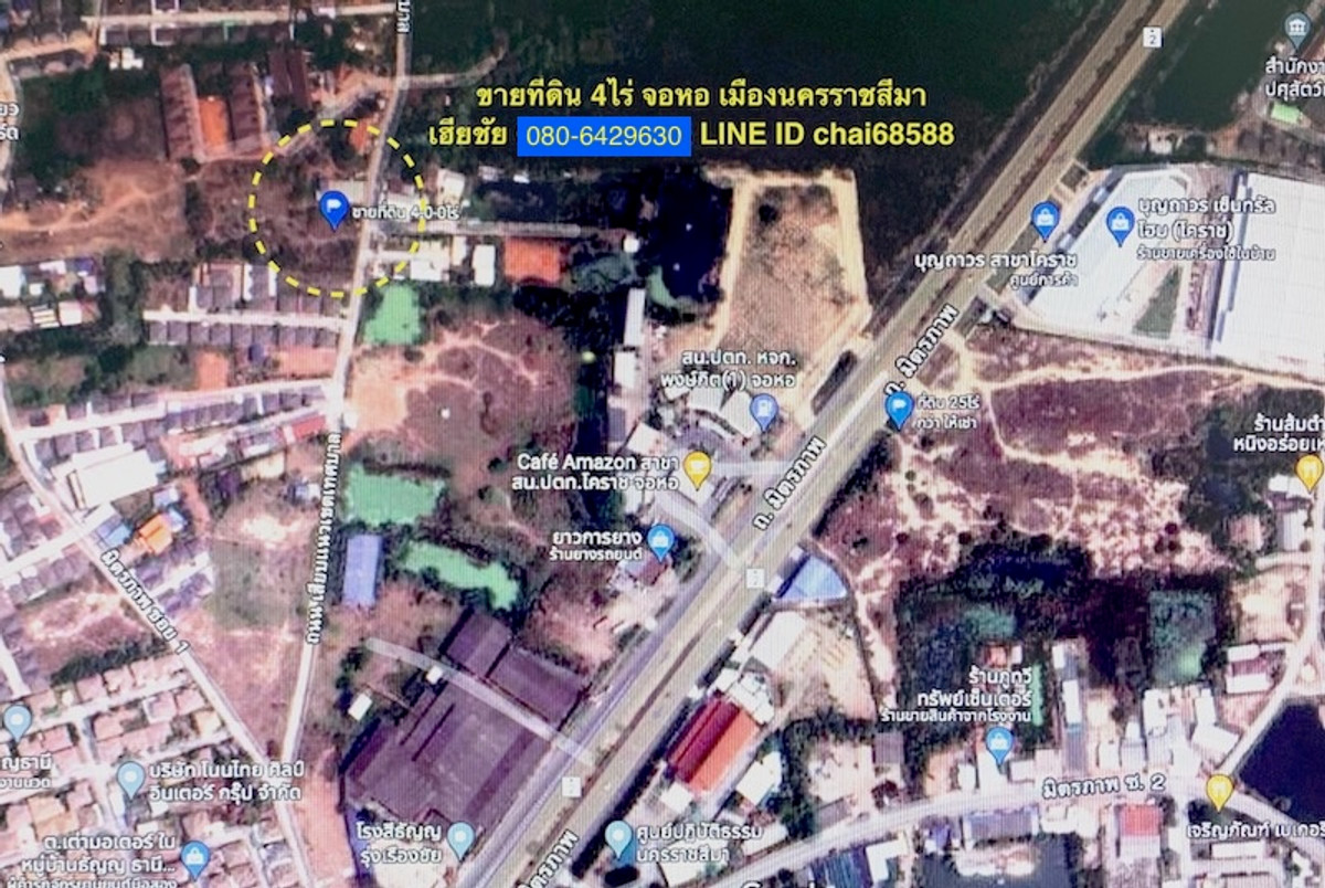 ขายที่ดิน 4ไร่ จอหอ เมืองโคราช ใกล้แยกจอหอ ที่ดินหน้ากว้าง 45เมตร ลึก 100เมตร มีแนวสายไฟฟ้าผ่านที่ดิน ห่างจากถนนมิตรภาพ 250เมตร เหมาะปลูกบ้านอยู่อาศัย โกดัง คลังสินค้า ห่างจากเซ็นทรัล 2กม. (5นาที) ขาย