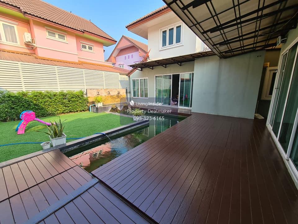 SK01693 ขายบ้านเดี่ยว หมู่บ้านลภาวัน 15 ขนาด 115 ตร.วา 4 นอน 4น้ำ *ติดถนนราชพฤกษ์ บ้านเดี่ยว 2 ชั้น ที่ดิน 115 ตารางวา พื้นที่ใช้สอย 235 ตารางเมตร 3 ห้องนอน 3 ห้องน้ำ 1 ห้องแม่บ้าน (+ห้องน้ำแม่บ้าน) - ห้องรับแขกใหญ่ + มีห้องด้านล่างสำหรับเด็กหรือผู้สูงอายุ - ห้องครัวแยกส่วน - เรือนหลังเล็ก ขนาด 30 ตรม. 1 ห้องนอน +1ห้องน้ำ - จอดรถ 2 คัน (จอดหน้าบ้านได้อีก 4 คัน เนื่องจากถนนเมนของหมู่บ้านกว้างมาก) - ปลูกต้นไม้ใหญ่ ร่มรื่นทั้งบ้าน - หน้าบ้านเป็นสวน+พื้นระแนง หลังบ้านเป็นหญ้าเทียมริมบ่อปลา - มีบ่อปลา 40 ตัน ลึก 1.3 เมตร พร้อมระบบกรอง Moving bed + บ่อน้ำพุด้านหน้า - ติดถนนเมนหมู่บ้าน 4 เลน * ค่าส่วนกลาง เดือนละ 800 บาท ราคาขาย :: 9,500,000 บาท (ค่าโอน 50/50) *บริการสินเชื่อฟรีไม่มีค่าใช้จ่าย ดูแลจนถึงวันโอน สนใจติดต่อ Tel : คลิกเพื่อดูเบอร์โทรติดต่อ (TH,Eng) คลิกเพื่อดูเบอร์โทรติดต่อ (TH) LineID : @assetsk (Please fill @) *รบกวนแคปหน้าจอหรือส่ง link คอนโดที่สนใจ ส่งทางไลน์ได้เลยค่ะ ;D #PropertyDealmaker #ผู้ช่วยจัดหาทรัพย์ตามความต้องการของคุณ สถานที่ใกล้เคียง : - เมืองทองธานี - ศูนย์ราชการ -ใกล้ เซ็นทรัลเวสต์เกต -ใกล้ เมืองทองธานี -ใกล้ ศูนย์ราชการ -ใกล้ กรมที่ดินบางบัวทอง -ใกล้ รพ.ชลลดา -ใกล้ รพ.บางบัวทอง -ใกล้ วัดเล่งเน่ยยี่ 2 -ใกล้ Big C บางใหญ่ -ใกล้ Home Pro รัตนาธิเบศร์ -ใกล้ เซ็นทรัลรัตนาธิเบศร์ สิ่งอำนวยความสะดวก : – รปภ. – สนามเด็กเล่น, สวนสาธารณะ – ร้านค้า
