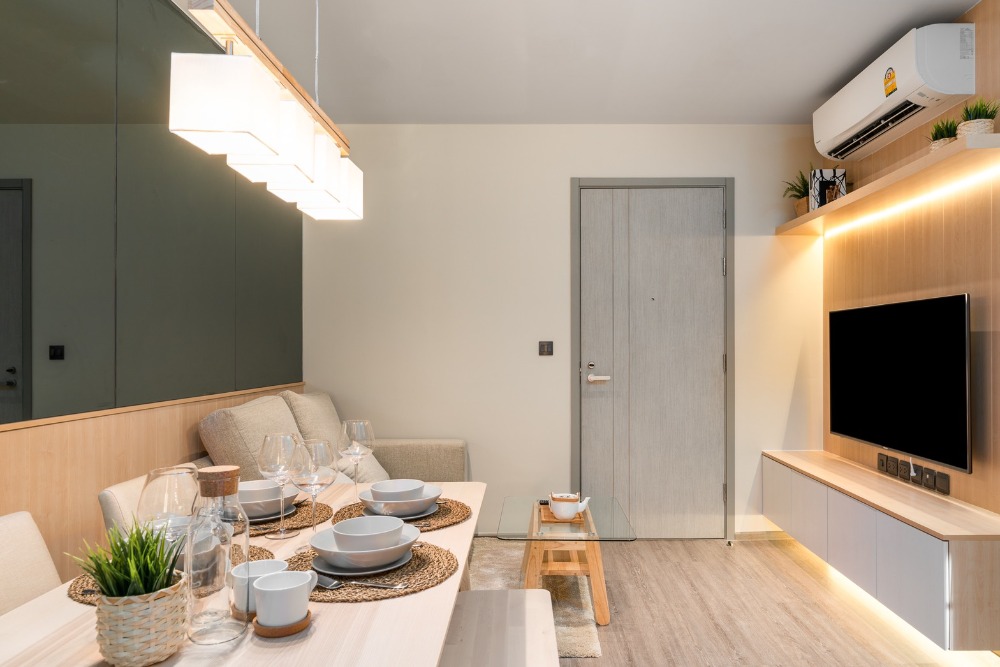 [For Rent] RHYTHM เอกมัย ขนาด 1 ห้องนอน 35 ตรม. ชั้น 8 วิวเมือง ภายในห้องตกแต่งสวยงามสไตล์ญี่ปุ่นสมัยใหม่ พร้อมเครื่องใช้ไฟฟ้าแบรนด์ญี่ปุ่นครบชุด: . - Panasonics Smart TV 4K 55 & 49 - ตู้เย็น Pana