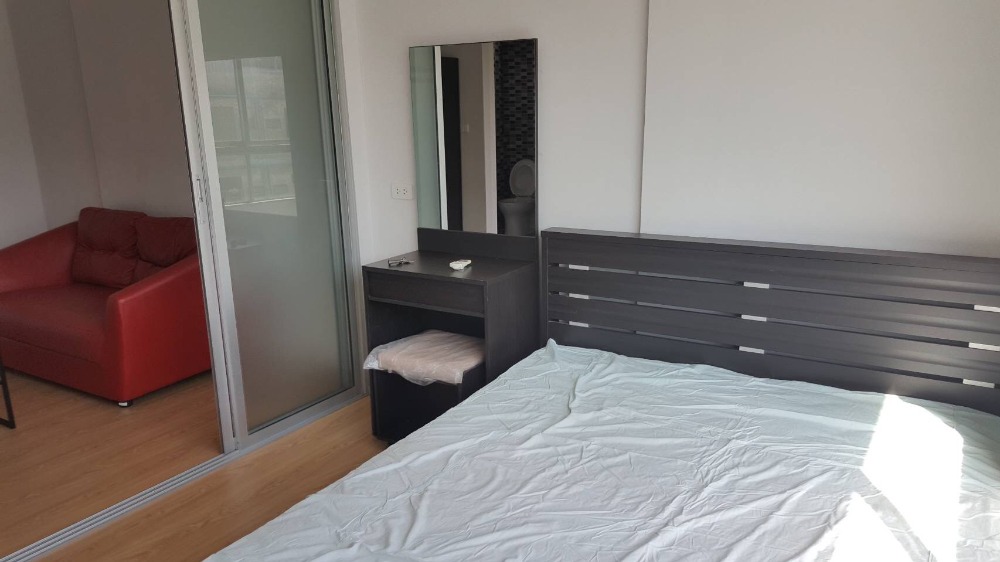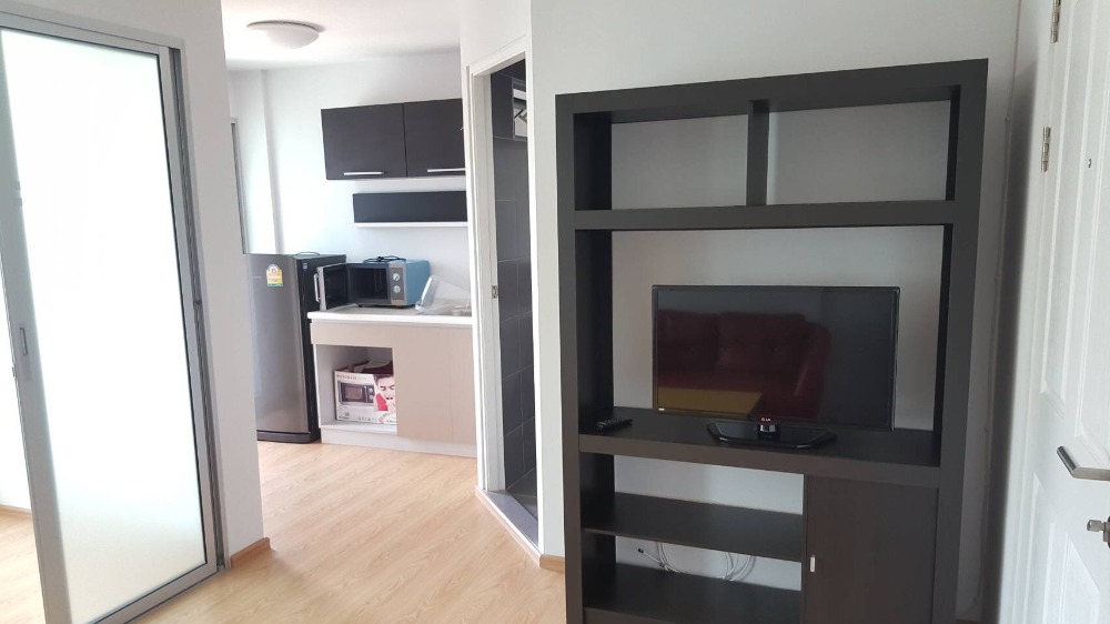 (b478) ขายคอนโดผ่อนตรง D Condo รัตนาธิเบศร์ (เดิน 2 นาทีจากสถานนีไทรม้า) - ตึกC ชั้น4 ขนาดห้อง 29.5 ตร.ม. - เตียง, ที่นอน, แอร์, ตู้เสื้อผ้า, โซฟา, ชั้น TV, ชั้นวางของ , อ่างล้างจาน เครื่องใช้ไฟฟ้า TV