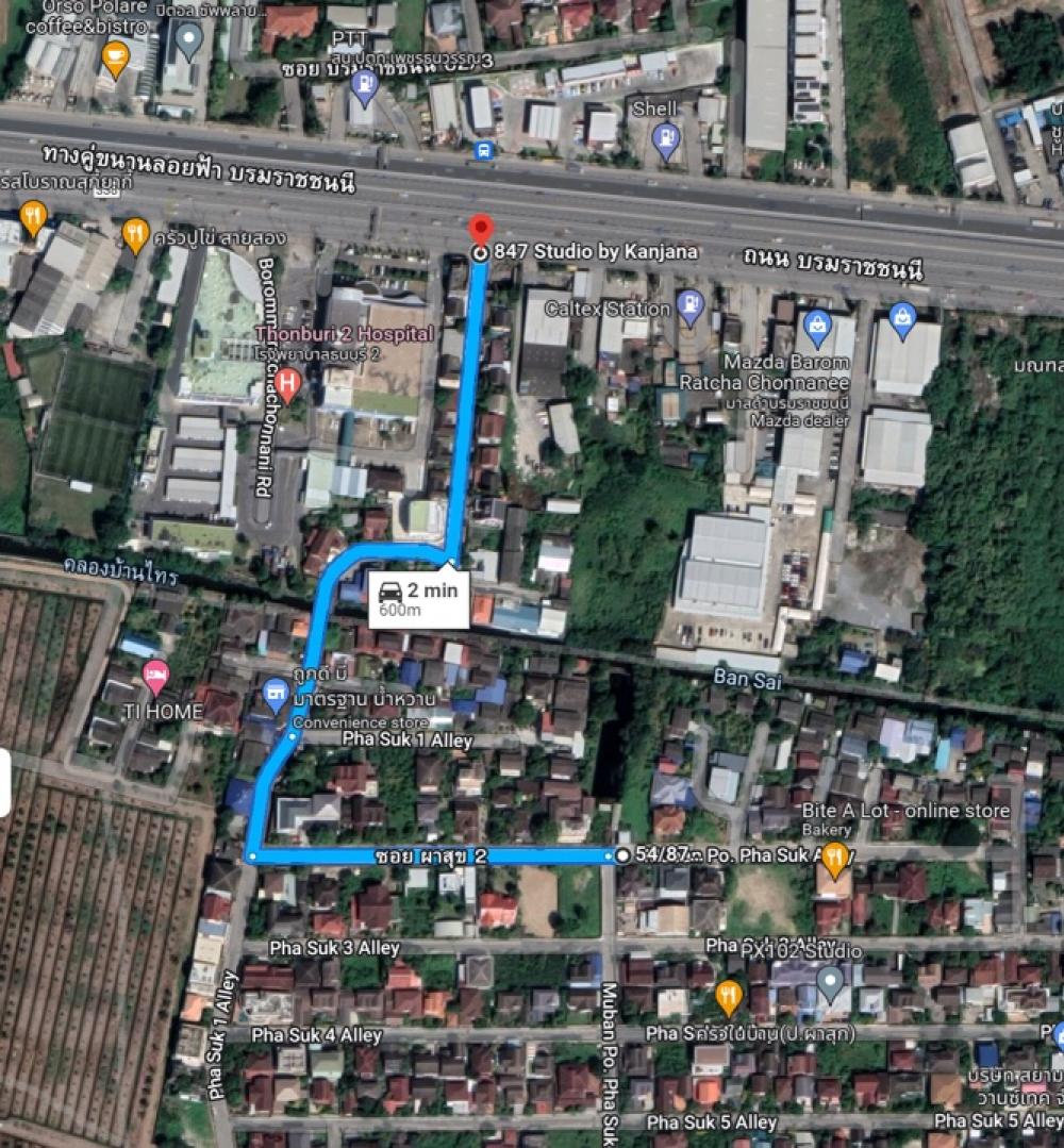 ที่ดิน 1 ไร่ หมู่บ้าน ป.ผาสุก ถนนบรมมราชชนนานี ตลิ่งชัน อยู่ในซอย ผาสุข 2 เข้าซอยมา 600 เมตร