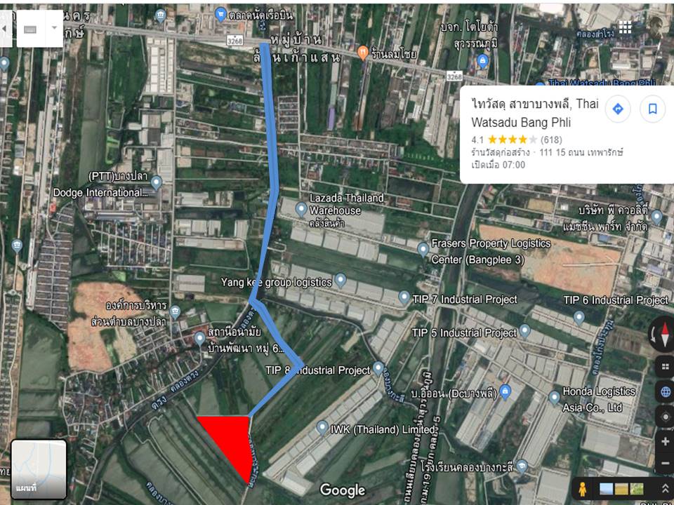 ขายที่ดินใกล้ถนนคลองส่งน้ำ ถูกสุดไร่ละ 4.5 ล้าน ใกล้เทพารักษ์ เข้าออกสะดวก รถเล็ก-ใหญ่ วิ่งได้
