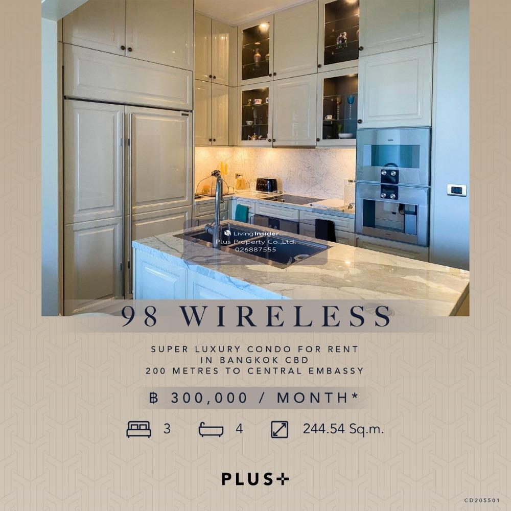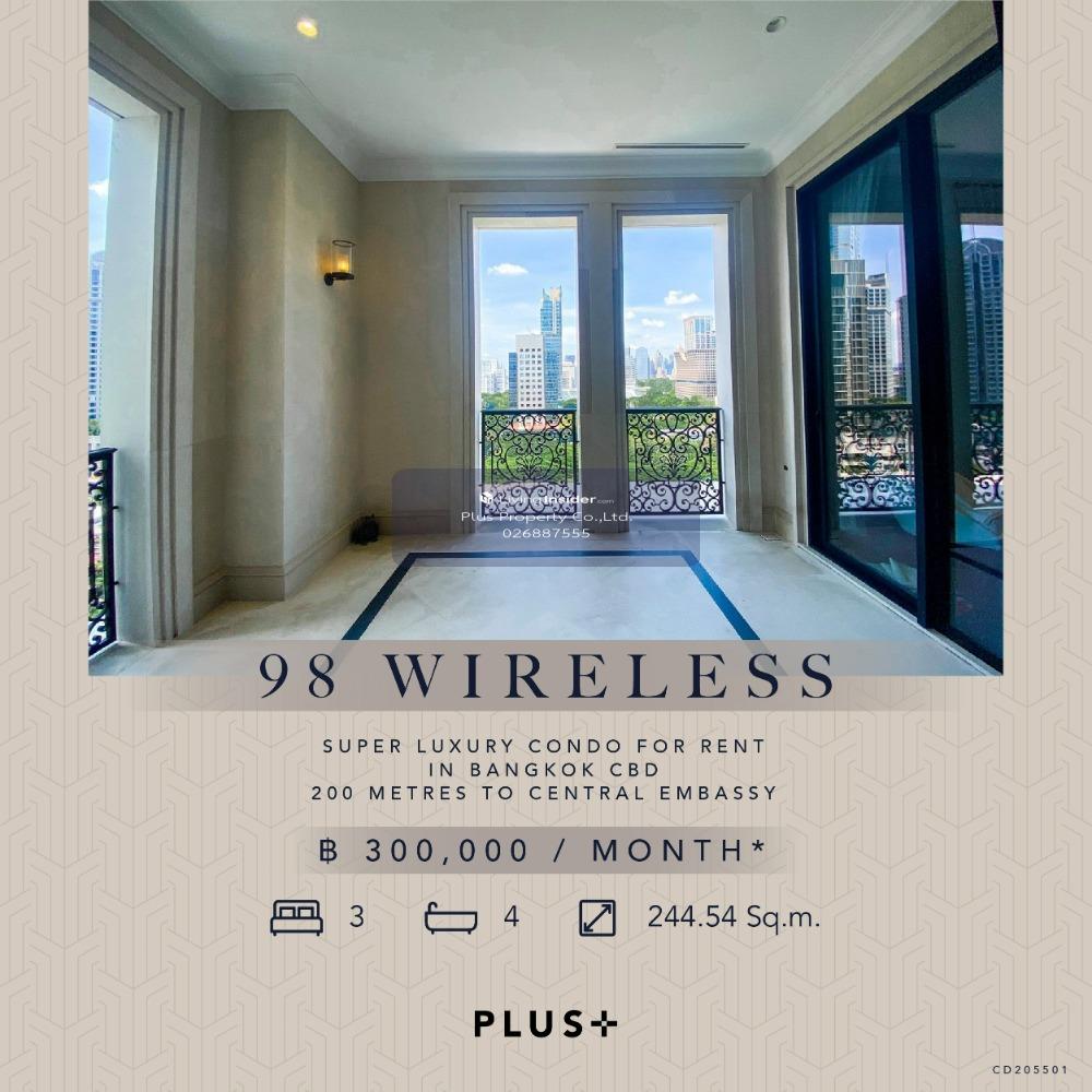 ให้เช่าคอนโดระดับ Super Luxury ที่มาพร้อมการออกแบบด้วยสถาปัตยกรรมที่หรูหรา 98 WIRELESS ห้องดูเพล็กซ์ 3 ห้องนอน 4 ห้องน้ำพร้อมอ่างอาบน้ำในตัว ห้องนั่งเล่นเปิดรับแสงธรรมชาติด้วยหน้าต่างเต็มบาน ห้องนอนสวย ครัวปิดเป็นสัดส่วน ระเบียงกว้างพร้อมจุดชมวิว เห็นวิวเมืองสวย พร้อมใส่ใจทุกรายละเอียดของชีวิตคุณด้วยสิ่งอำนวยความสะดวกและบริการสุดพิเศษ อาทิ สระว่ายน้ำ บริการรถลิมูซีน บริการลิฟต์ส่วนตัวพร้อมโถงลิฟต์ บริการผู้ช่วยส่วนตัว ฟิตเนส สตูดิโอ สปาพร้อมห้องนวดและห้องน้ำชา บนทำเลน่าปรารถนาบนถนนวิทยุ ใกล้รถไฟฟ้าสถานีเพลินจิตและใกล้ชิดแหล่งไลฟ์สไตล์ชั้นนำ เช่น เซ็นทรัล เอ็มบาสซี เซ็นทรัล ชิดลม และเกษร พลาซ่า ช่องทางการติดต่อของเรา Line : @Plusproperty Call : คลิกเพื่อดูเบอร์โทรติดต่อ