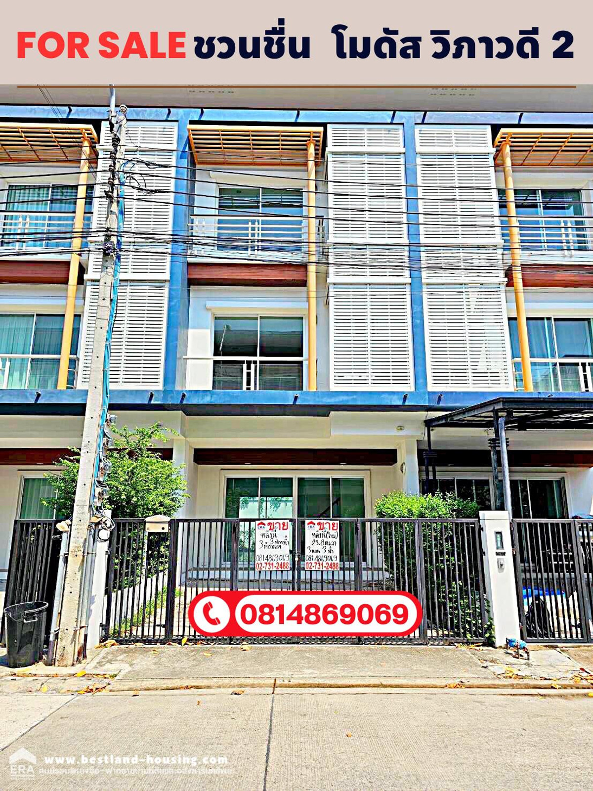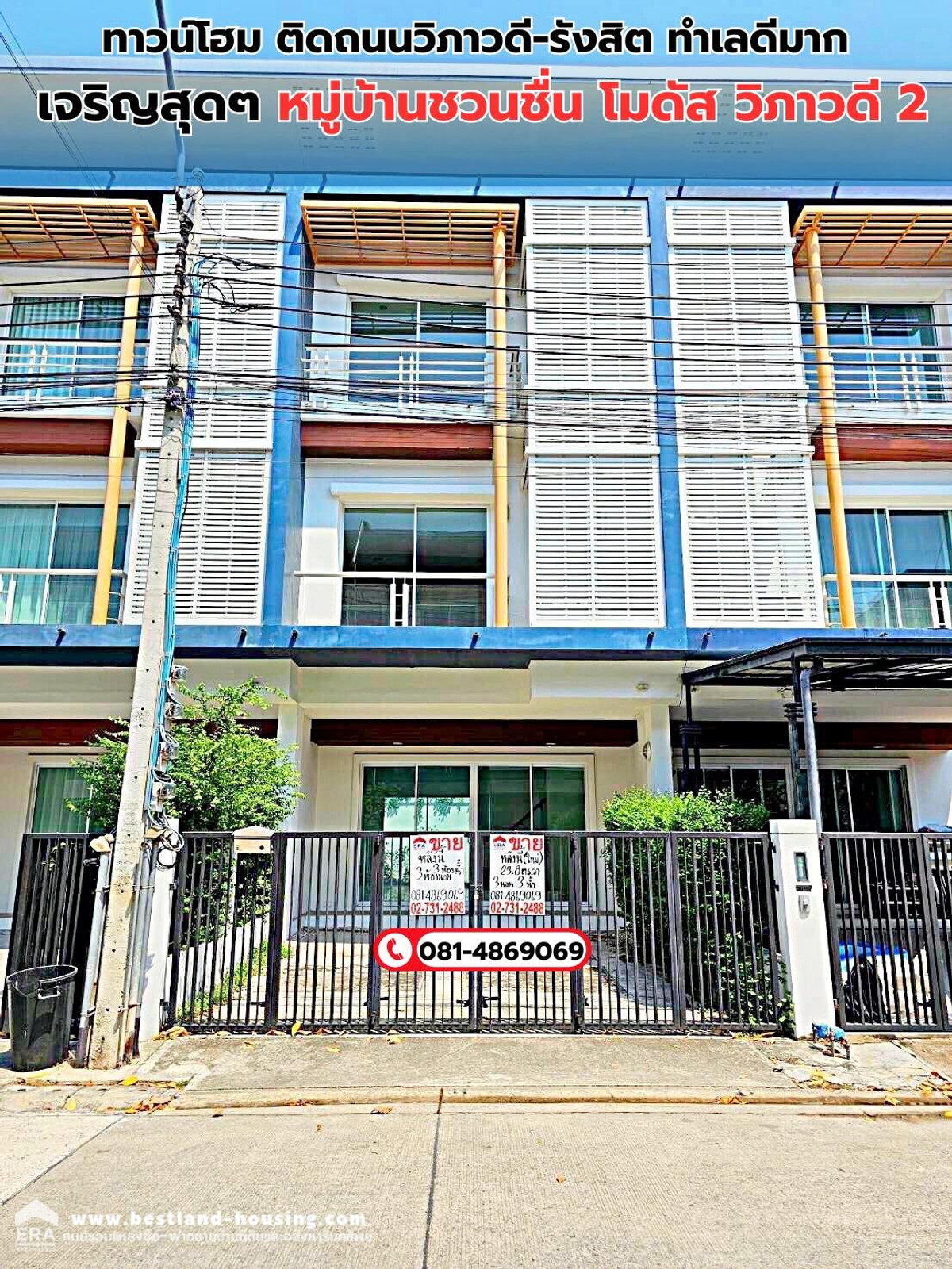 ขายทาวน์โฮม ติดถนนวิภาวดี-รังสิต ทำเลดีมาก เจริญสุดๆ โครงการการ ชวนชื่น โมดัส วิภาวดี 2 สถานที่ตั้ง อยู่บนถนนวิภาวดีรังสิตฝั่งขาเข้า ระหว่างซอยวิภาวดีรังสิต 70 และ 72 ราคาขาย 5.3 ล้านบาท สุดคุ้ม ไม่รีบตัดสินใจ จะพลาดโอกาสที่ดีมากๆค่ะ ติดต่อ คลิกเพื่อดูเบอร์โทรติดต่อ ปู id line :janthanee.pu ดูรายละเอียดเพิ่ม...https://shorturl.asia/dKcrT ทาวน์โฮม 3 ชั้น เนื้อที่23.8 ตร.ว. ขนาดพื้นที่ใช้สอย 222.42 ตร.เมตร 3 นอน 3 น้ำ 1 นั่งเล่น 1 ครัว (หน้าบ้านหันทิศใต้ รับลมดี) หน้ากว้าง 5.5 ม. จอดรถในบ้านได้ 2 คัน , หน้าบ้าน 1คัน สิ่งอำนวยความสะดวกในหมู่บ้าน - Fitness ฟรี - สนามเด็กเล่น - สวนสาธารณะ - ร้าน 7-11 - ร้านอาหารตามสั่ง - ร้านกาแฟ - สระว่ายน้ำ - รปภ.ดูแลความปลอดภัย 24 ช.ม. สถานที่ใกล้เคียง - ศูนย์ราชการแจ้งวัฒนะ - วัดหลักสี่ - เจ้เล้ง (700 ม.) - ปั๊มน้ำมัน ปตท. (800 ม.) - แยกหลักสี่ (900 ม.) - สถามบินดองเมือง (3.3 กม.) - เซ็นทรัลรามอินทรา (3.5 กม.) - ม.เกษตรศาสตร์ (4.9 กม.) - รพ.วิภาวดี (5.9 กม.) - อิมแพคเมืองทองธานี (12.0 กม.) - โครงการรถไฟฟ้าสายสีแดงเข้ม เปิดให้บริการเต็มรูปแบบแล้ว(รังสิต – บางซื่อ) สถานีหลักสี่ - ทางยกระดับดอนเมืองโทลล์เวย์ (ออกจากหมู่บ้านแล้วขึ้นได้เลย) ขายทาวน์โฮม ติดถนนวิภาวดี-รังสิต ทำเลดีมาก เจริญสุดๆ โครงการการ ชวนชื่น โมดัส วิภาวดี 2 สถานที่ตั้ง อยู่บนถนนวิภาวดีรังสิตฝั่งขาเข้า ระหว่างซอยวิภาวดีรังสิต 70 และ 72