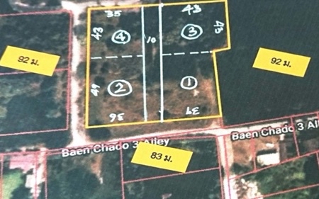 ขาย ที่ดิน ซอยแบนชะโด 3 คลองสามวา มีนบุรี 375 ตร.วา เหมาะทำโกดัง ฟาร์มผัก บ้านพักอาศัย ::รายละเอียด:: - ขนาด 375 ตร.วา - ที่ดินแบ่งขาย มี 4 แปลง ติดถนนทุกแปลง (มีถนนส่วนกลางผ่ากลางแปลงใหญ่ทำให้แปลงที่แบ่งมาติดถนนทุกแปลง) แปลง1~450ตร.วา; แปลง2~440ตร.วา; แปลง3~460ตร.วา; แปลง4~375ตร.วา - หน้ากว้างติดถนน 43 เมตร, ลึก 43 เมตร (โดยประมาณ) - ยังไม่ได้ถม ต่ำกว่าถนนประมาณ 1.5 เมตร - ถนนกว้าง 4 เมตร - ผังเมืองสีเขียวลาย ก.1-7 - เหมาะทำฟาร์มเลี้ยงสัตว์ ทำบ้านพักอาศัยสวนเกษตร และโกดัง หรือโรงงานเพื่อการเกษตร :: สถานที่ใกล้เคียง :: - ห่างปากซอยแบนชะโด ถนนประชาร่วมใจ ประมาณ 2.2 กม. - ห่างจาก แม็คโคร หนองจอก ประมาณ 9 กม. - ห่างจาก ร.ร.สารสาสน์วิเทศ มีนบุรี ประมาณ 9 กม. - ห่างจาก ม.เทคโนโลยีมหานคร ประมาณ 12 กม. - ห่างจาก โลตัส หนองจอก ประมาณ 12 กม. พิกัด: http://maps.google.com/maps?q=13.865139,100.784756 ราคา: 2,812,500 บาท สนใจติดต่อ: ภาณุวัฒน์ คลิกเพื่อดูเบอร์โทรติดต่อ Line: @363ykwoi รับฝากขายอสังหาทุกชนิด บริการครบทุกขั้นตอนจนโอนกรรมสิทธิ์ รับซื้อบ้าน คอนโด ที่ต้องการขายด่วน