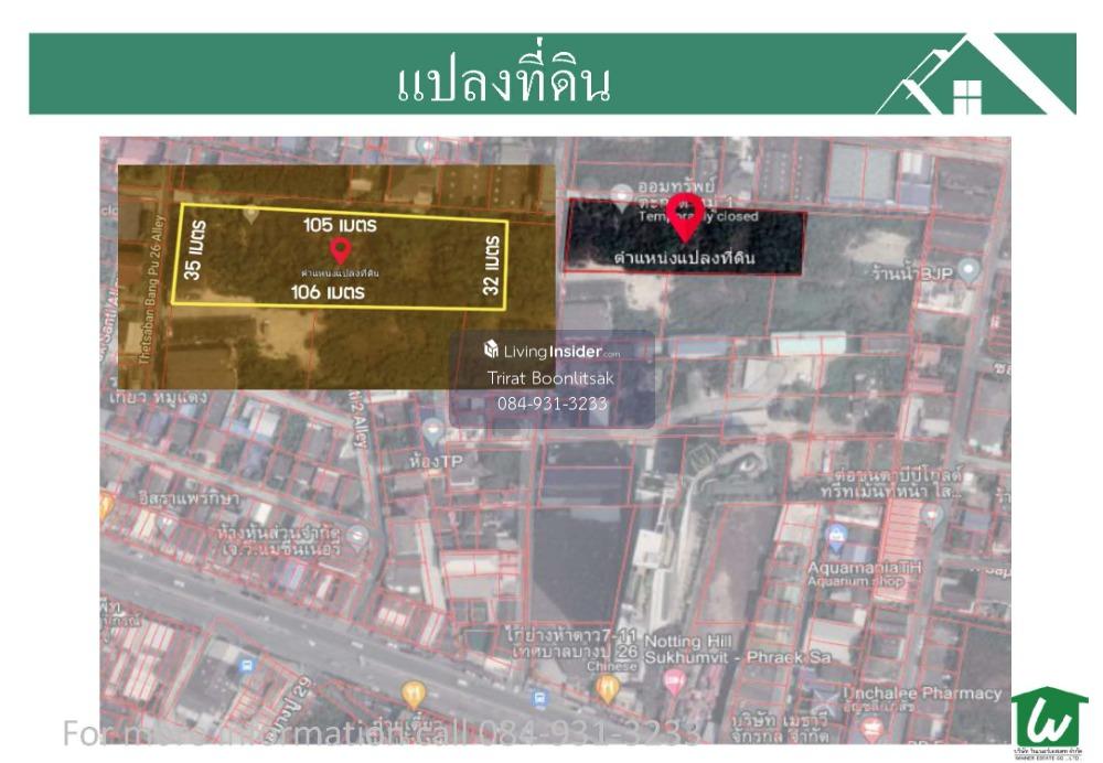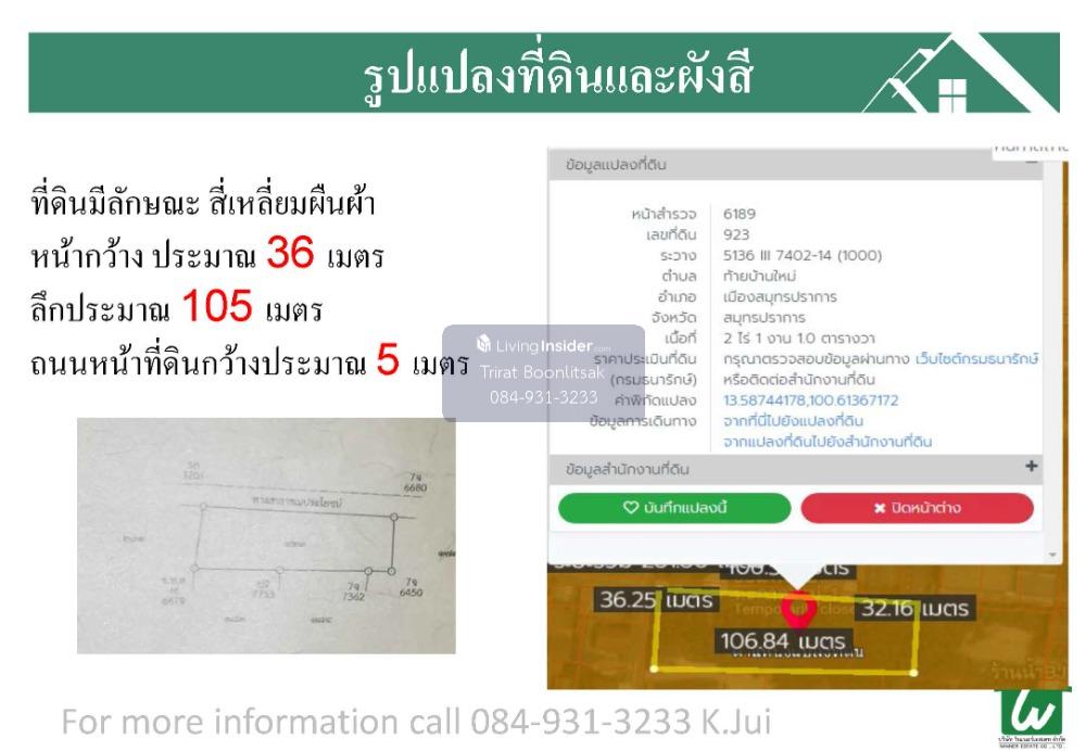 ที่ดิน ถมระดับถนน ขนาด 2-1-1 ไร่ ผังสีน้ำตาล ซอยเทศบาลบางปู 26 ถนนแพรกษา ใกล้ BTS แพรกษา โรบินสัน สมุทรปราการ บิ๊กซี สมุทรปราการ ห่างจากถนนแพรกษาเพียง 200 เมตร ราคาขาย เพียง ตารางวาละ 21,000 บาท Location https://goo.gl/maps/kciYghnKZCADpMbM7 ***สนใจนัดชมหรือสอบถามรายละเอียดเพิ่มเติม *** โทร 0 8 4 - 9 3 1 - 3 2 3 3 ศูนย์แปดสี่-เก้าสามหนี่ง-สามสองสามสาม Line ID: คลิกเพื่อดูเบอร์โทรติดต่อ พิมพ์เบอร์โทรช่องไลน์ไอดี ลักษณะที่ดิน - ที่ดิน ขนาด 2-1-1 ไร่ 901 ตารางวา - รูปแปลงที่ดินคล้าย สี่เหลี่ยมผืนผ้า - หน้ากว้าง 35 x 160 เมตร - ผังสีน้ำตาล - ที่ดินความสูง ระดับถนน - ค่าโอน+ค่าอากร ฝ่ายละครึ่ง ทำเล - ใกล้ BTS แพรกษา 1 กม. - ใกล้ โรบินสัน สมุทรปราการ - ใกล้บิ๊กซี สมุทรปราการ - ใกล้ แบล็คมาร์เก็ต - เดินทางไปสนามบินสุวรรณภูมิ 30 นาที =================== ติดต่อสอบถามเพิ่มเติม หรือนัดชมทรัพย์ Tel : คลิกเพื่อดูเบอร์โทรติดต่อ Line ID : คลิกเพื่อดูเบอร์โทรติดต่อ Email : คลิกเพื่อดูอีเมล รับจำนอง ขายฝาก รับฝากขายอสังหาริมทรัพย์ทุกชนิด บ้าน ที่ดิน คอนโด ห้องแถว ทาวเฮ้าส์ บ้านแฝด อพาร์ทเม้นท์ เป็นต้น ไม่มีค่าใช้จ่ายล่วงหน้า ไม่มีค่าการตลาด จนกว่าจะขายได้ พร้อมช่วยจัดหาสถาบันการเงินในกรณีที่ต้องการกู้ โดยทีมงานมืออาชีพ ด้วยการทำการตลาดหลากหลายช่องทาง